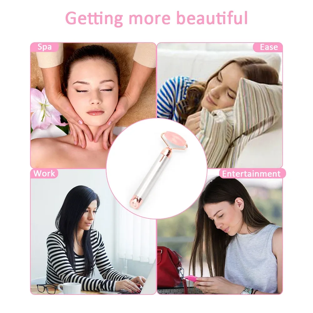 Electric Vibrating Natural Rose Quartz Jade Facial Roller