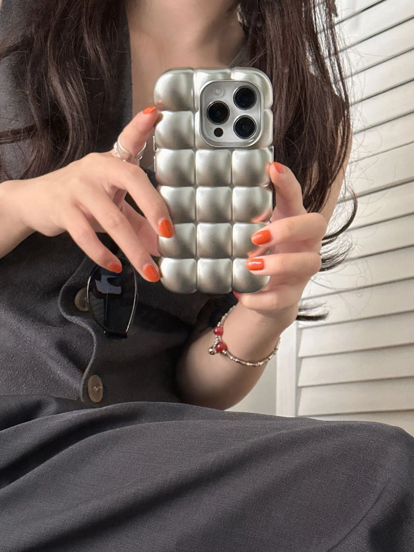 Electroplating Egg Waffle Matte Sliver Phone Case