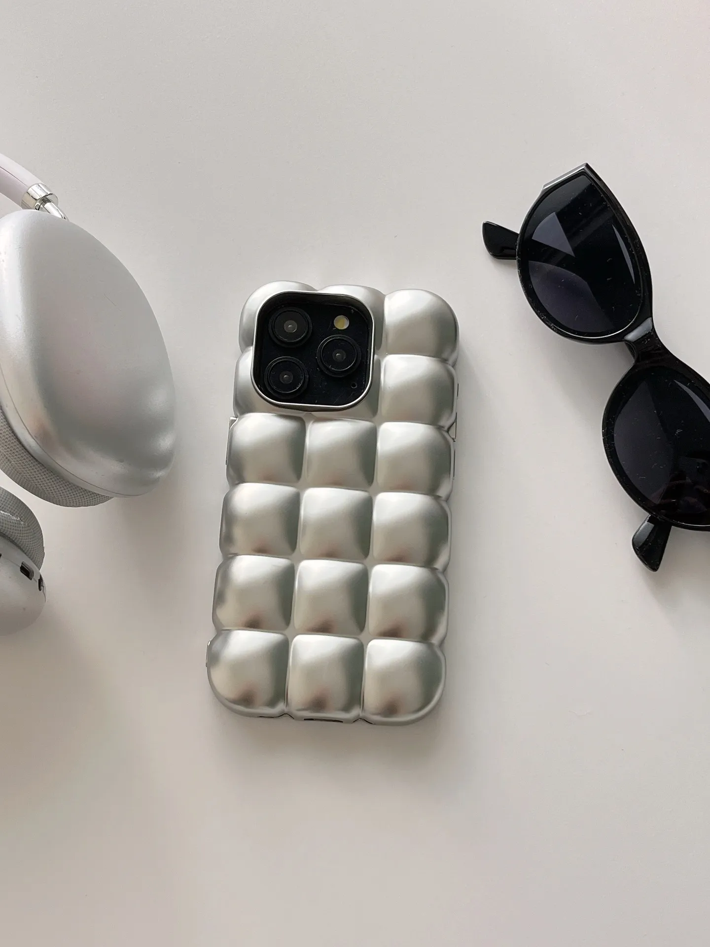 Electroplating Egg Waffle Matte Silver Phone Case