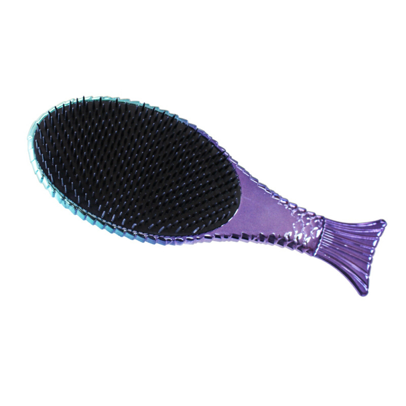 The Electroplating Gradient Mermaid Massage Hairdressing Comb is a stunning and practical tool designed for smooth, tangle-free hair. This beautifully crafted comb features a vibrant, gradient electroplating finish inspired by mermaid scales, adding a touch of fantasy and style to your hair care routine. Its ergonomic design fits comfortably in your hand, providing precise control while you detangle, style, and massage your scalp. The soft, flexible bristles glide effortlessly through all hair types, from straight to curly, ensuring that knots are gently and effectively removed without causing pain or damage. Perfect for wet or dry hair, this comb combines aesthetics with function, making it a must-have accessory for everyday use.