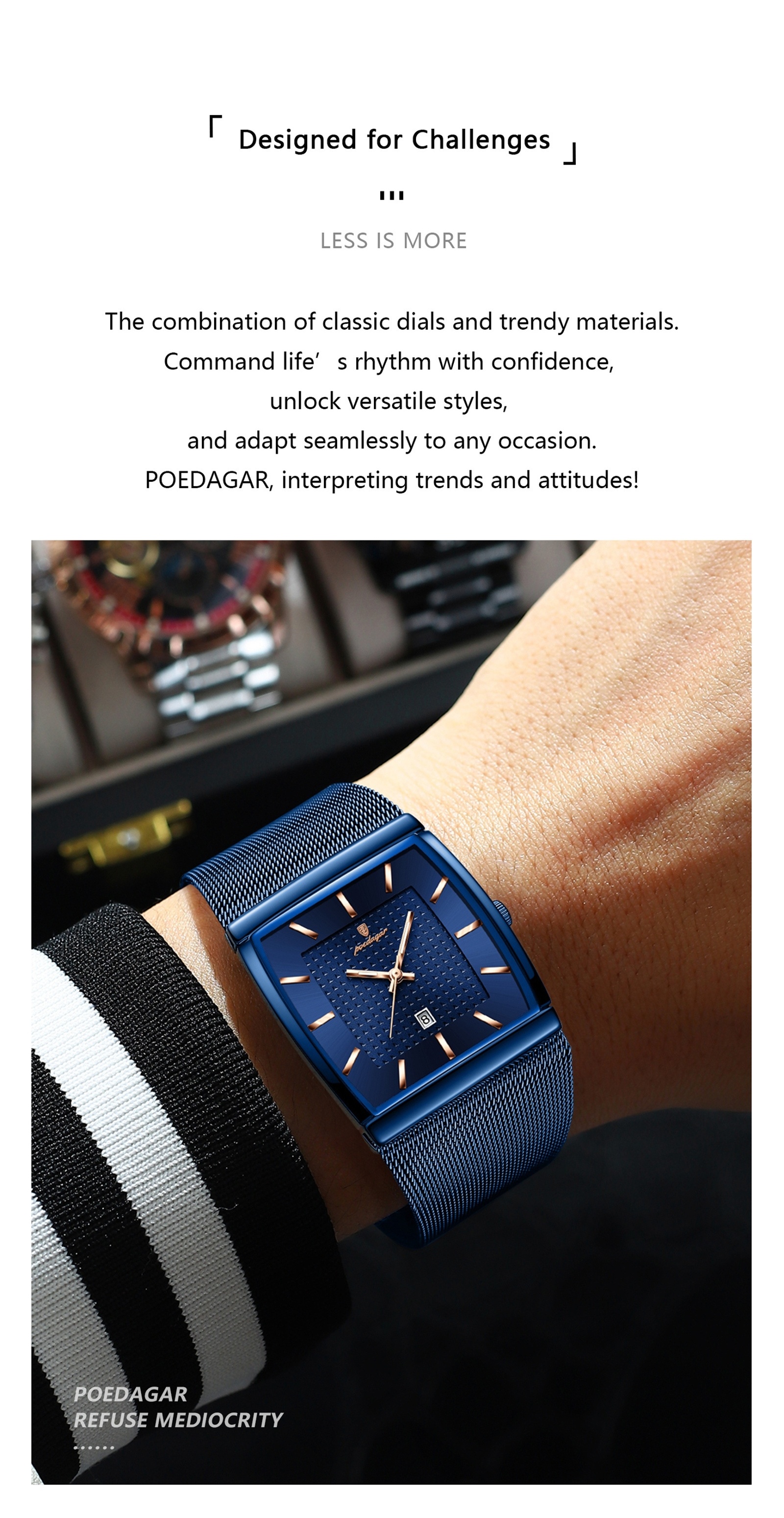 . Featuring a sleek stainless steel mesh strap and a distinctive square dial, this watch offers a bold yet sophisticated look that complements both casual and formal outfits. The quartz movement ensures precise timekeeping, while the integrated date display keeps you organized throughout the day. Built with 3ATM water resistance, it is suitable for daily activities like hand washing or light rain. Whether for birthdays, anniversaries, Father’s Day, or corporate gifting, this elegant watch is a memorable and practical present.Why You Need This