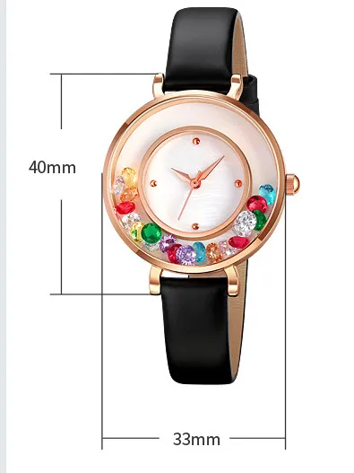 The gemstone ball accents around the dial add a touch of glamour and elegance to the watch, making it an eye-catching piece that stands out in any setting. The gemstones sparkle beautifully in different lighting, giving the watch a luxurious, refined look.