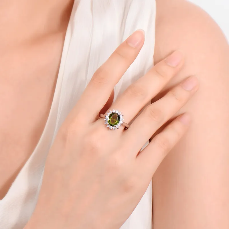 Elegant Oval Sunflower Zircon Ring – S925 Sterling Silver Statement Jewelry for Women
