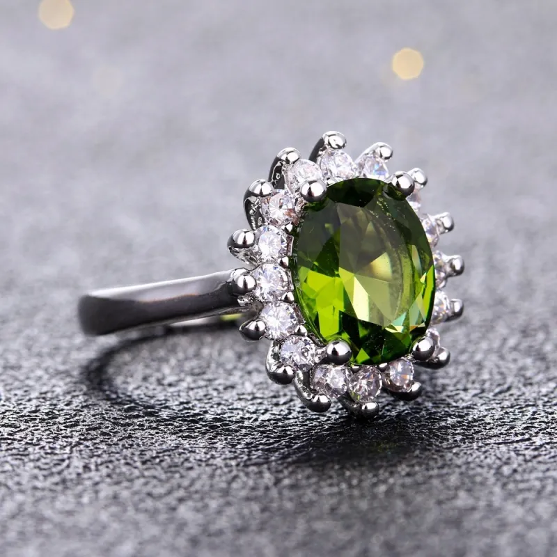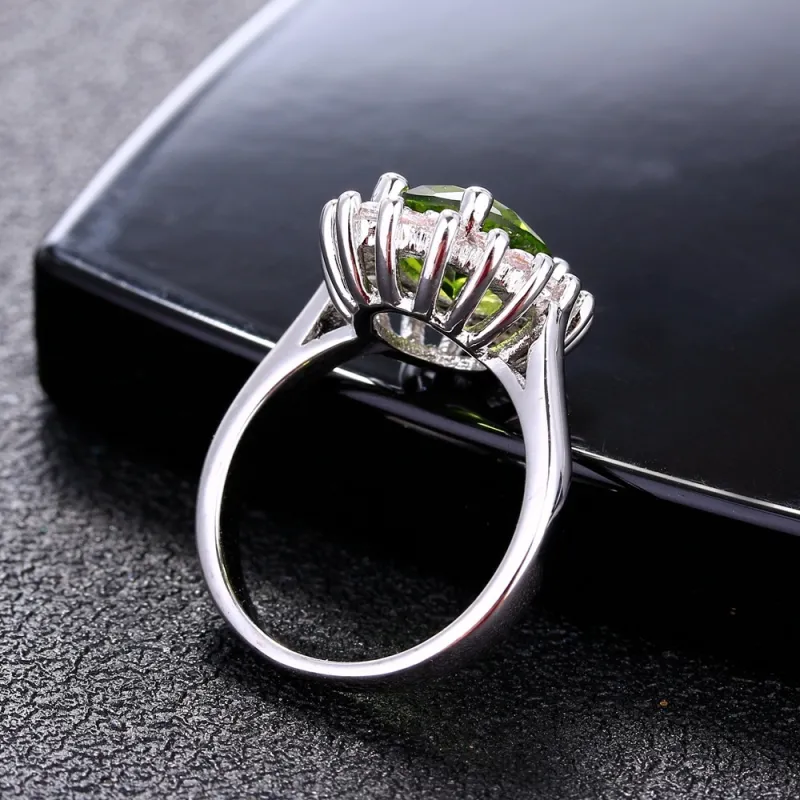 - Striking Sunflower Design: Features a dazzling oval zircon centerpiece surrounded by a halo of sparkling stones.