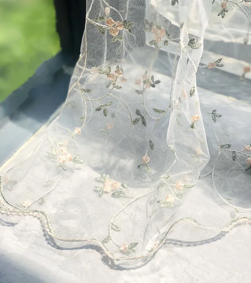 Embroidered Flower Lace Fabric – Elegant Detail for Creative Designs