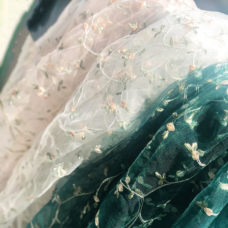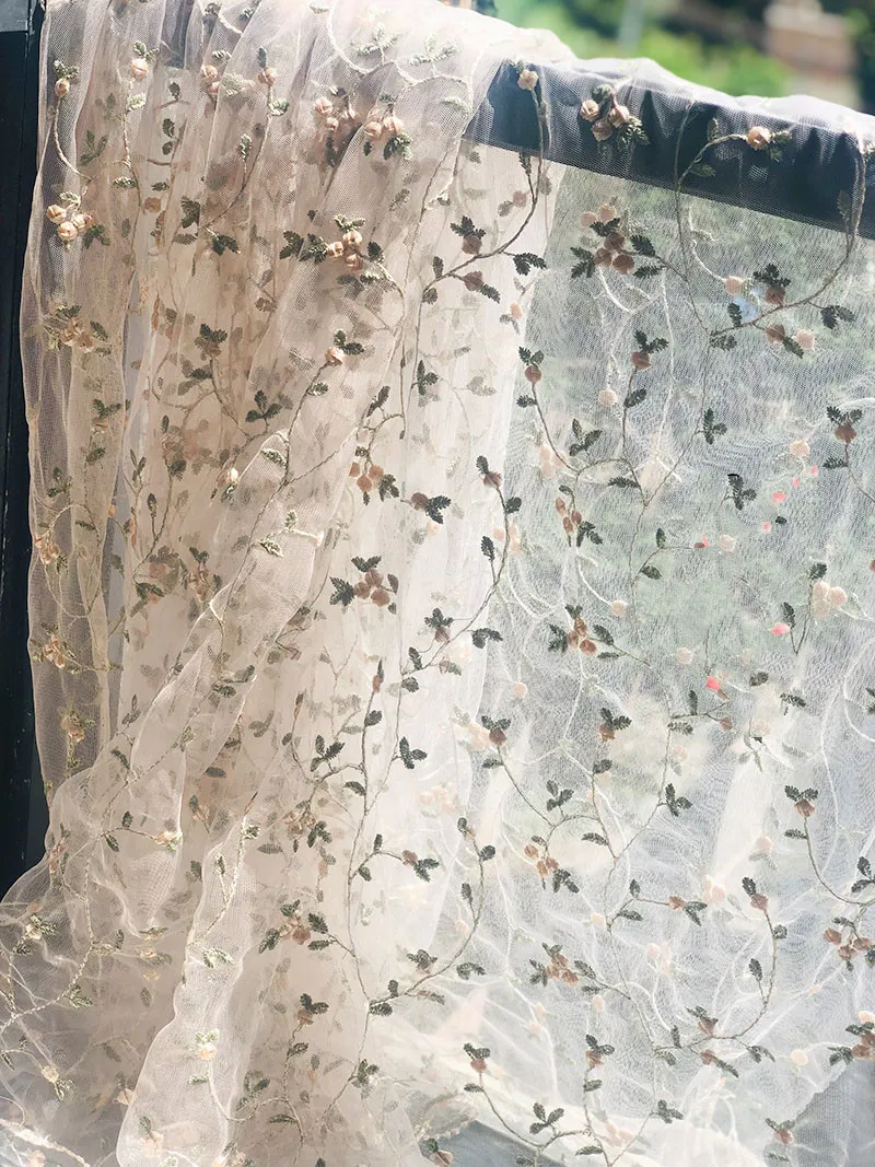 In addition to clothing, the Embroidered Flower Lace Fabric can be used for decorative purposes such as table settings, accessories, or home décor accents. Its versatility makes it a valuable material for various creative uses.