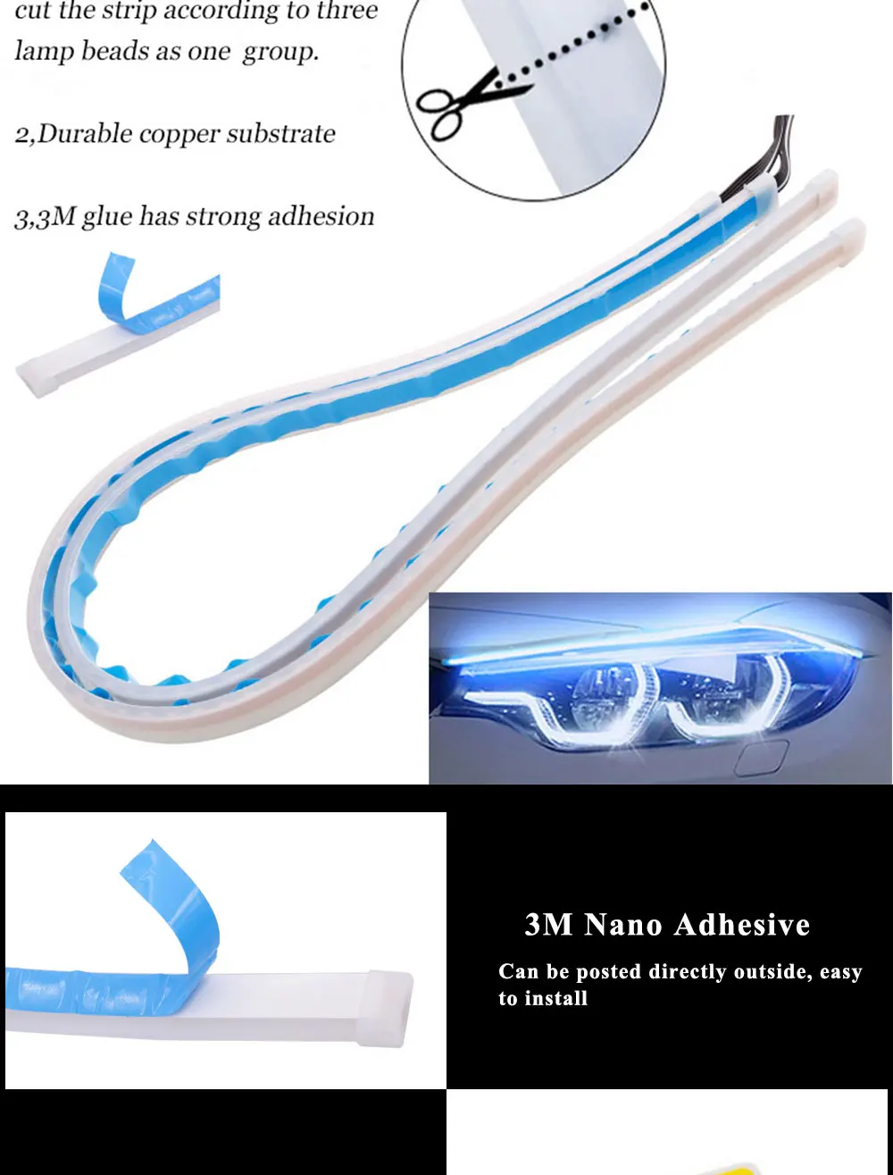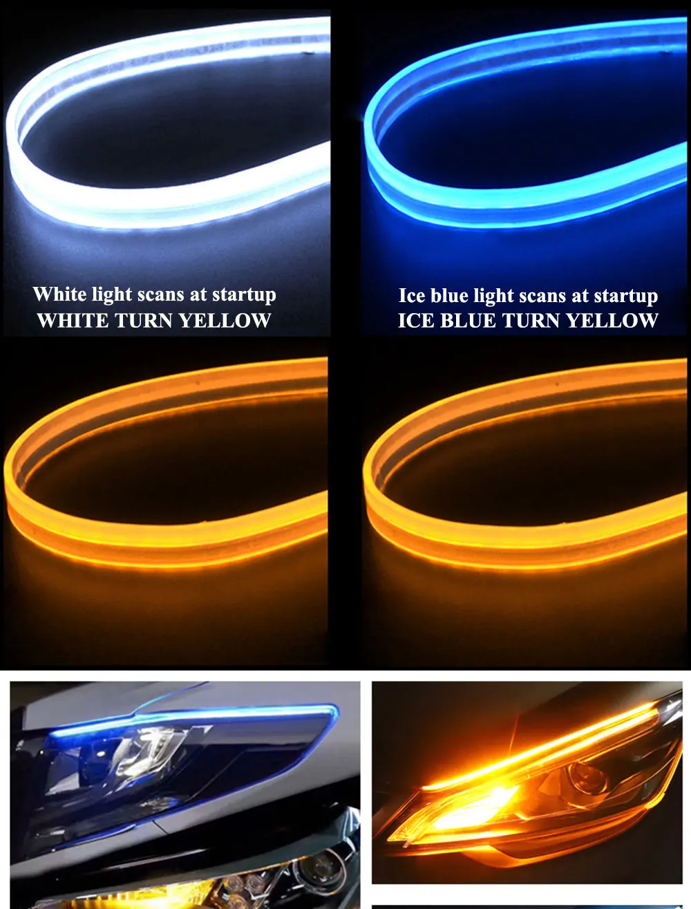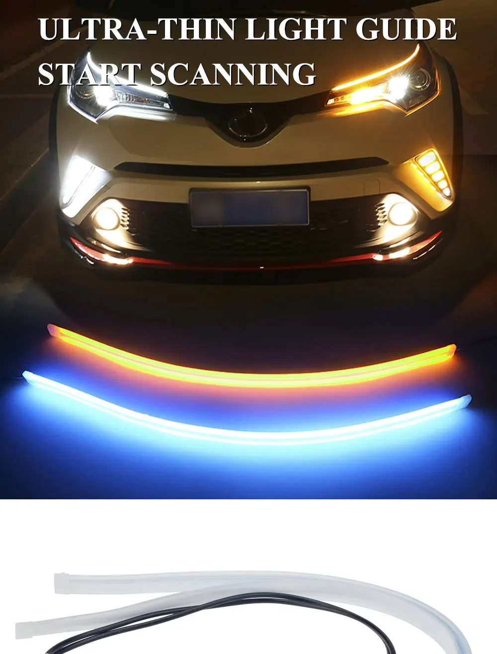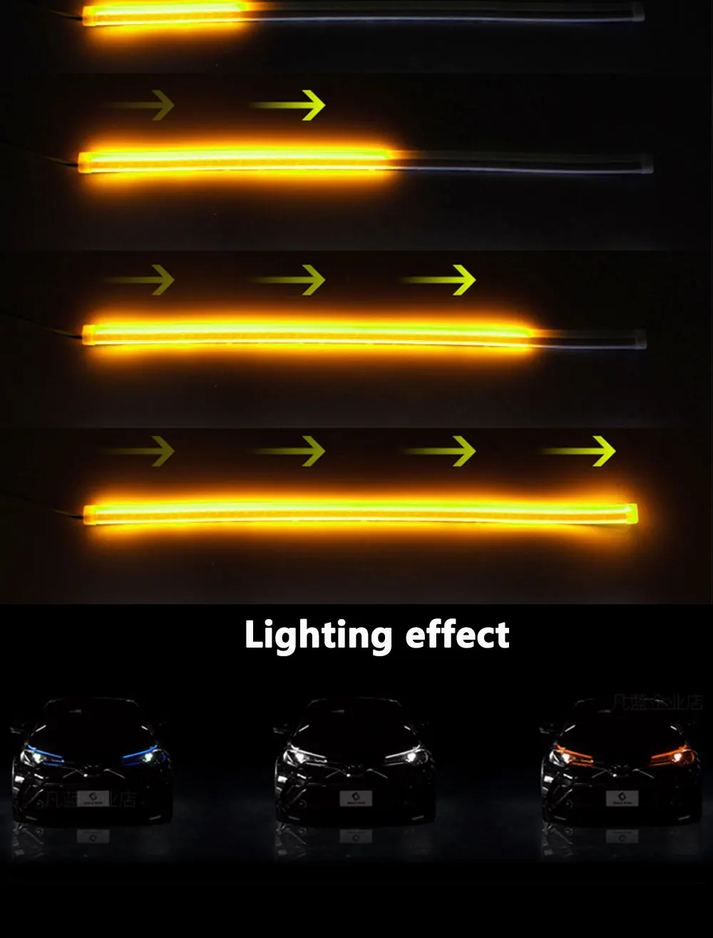 2PCS 30CM Car Daytime Running Light Flexible Strip Ice blue Turn Signal Yellow Brake Flow Lights DRL Auto Headlights 12v