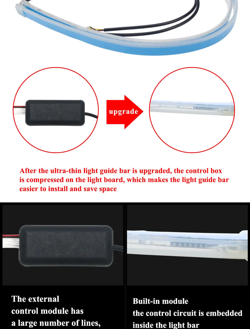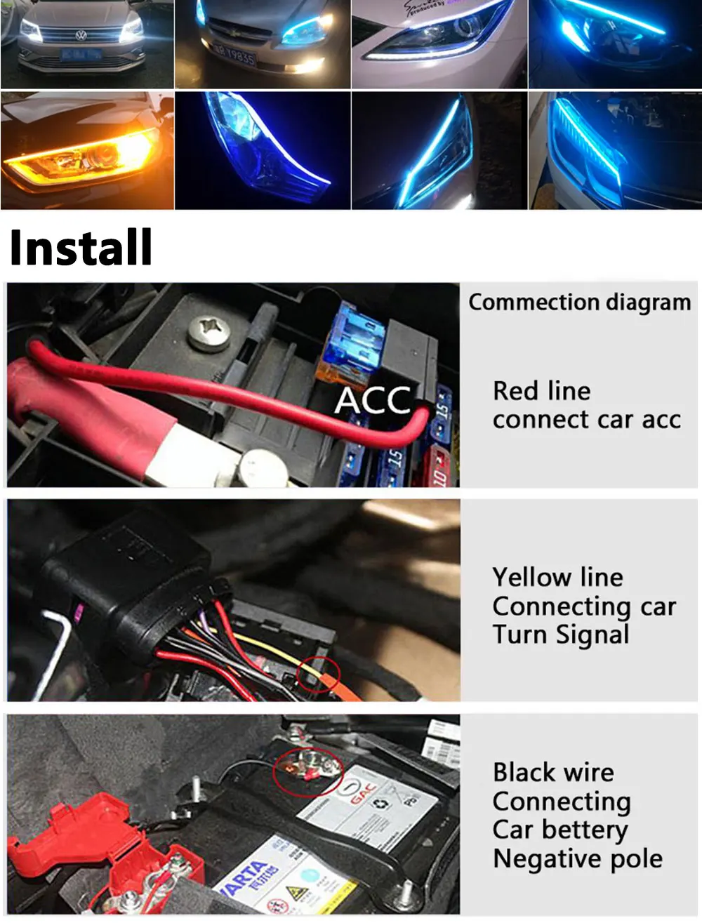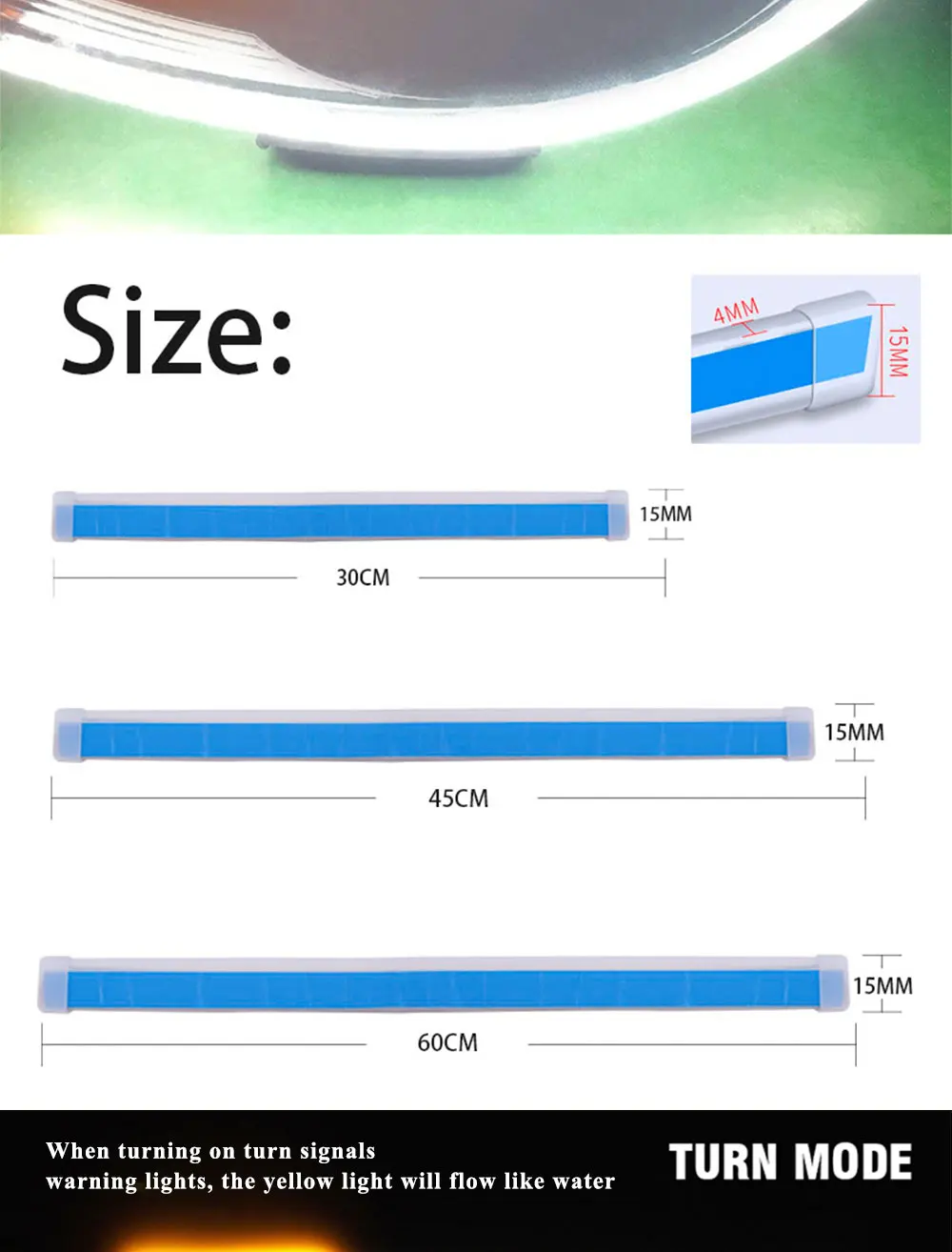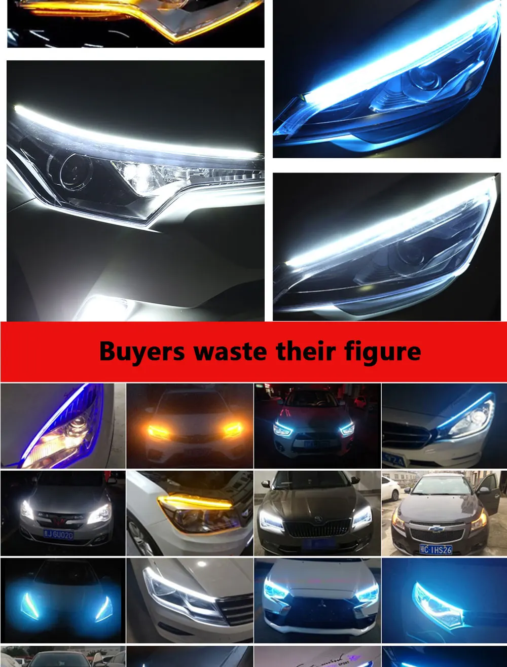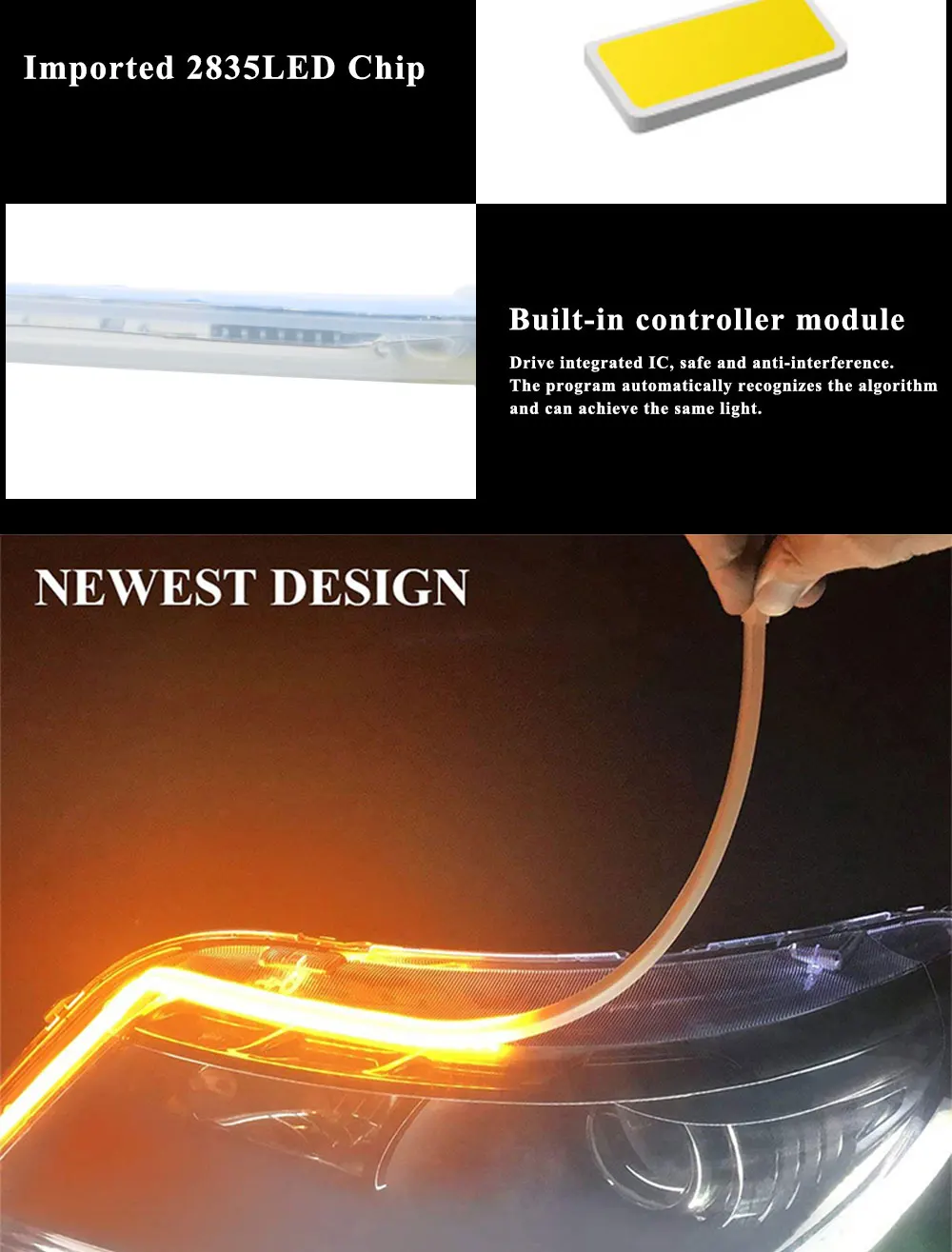2PCS 30CM Car Daytime Running Light Flexible Strip Ice blue Turn Signal Yellow Brake Flow Lights DRL Auto Headlights 12v
