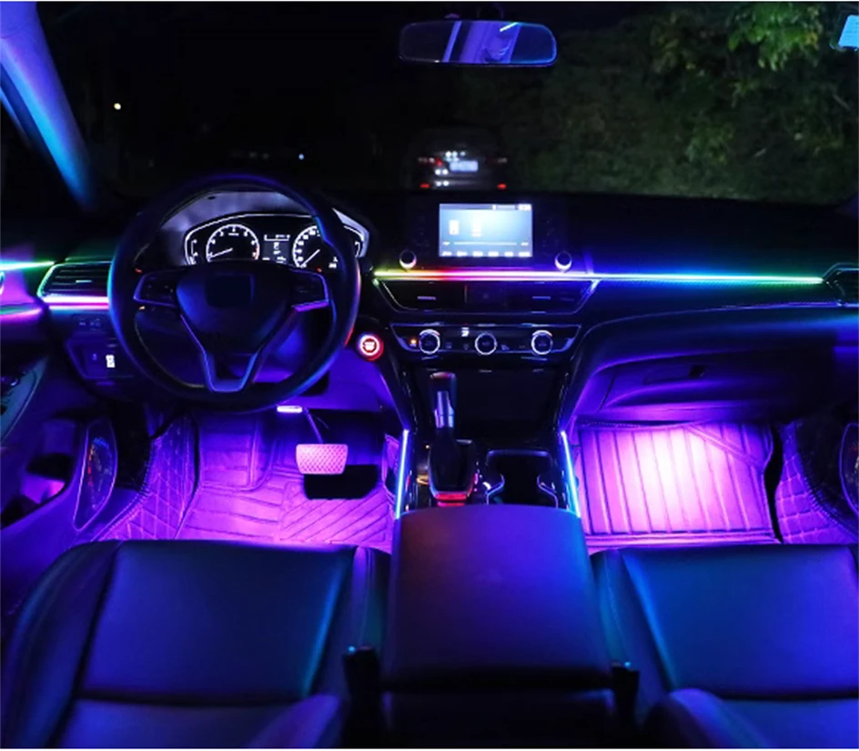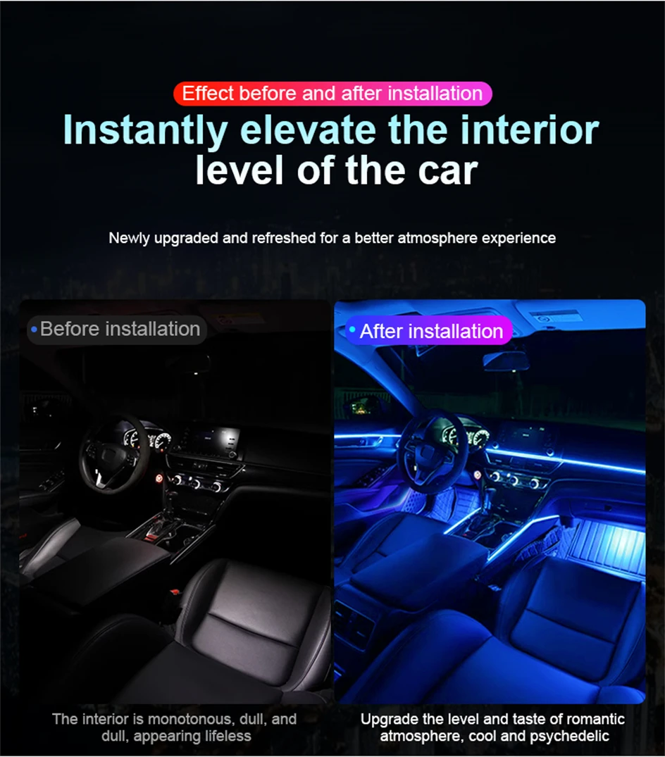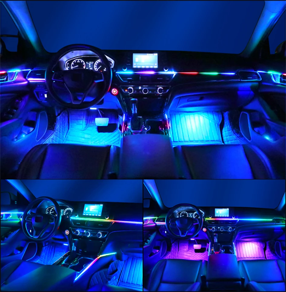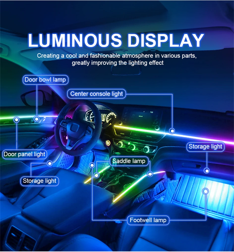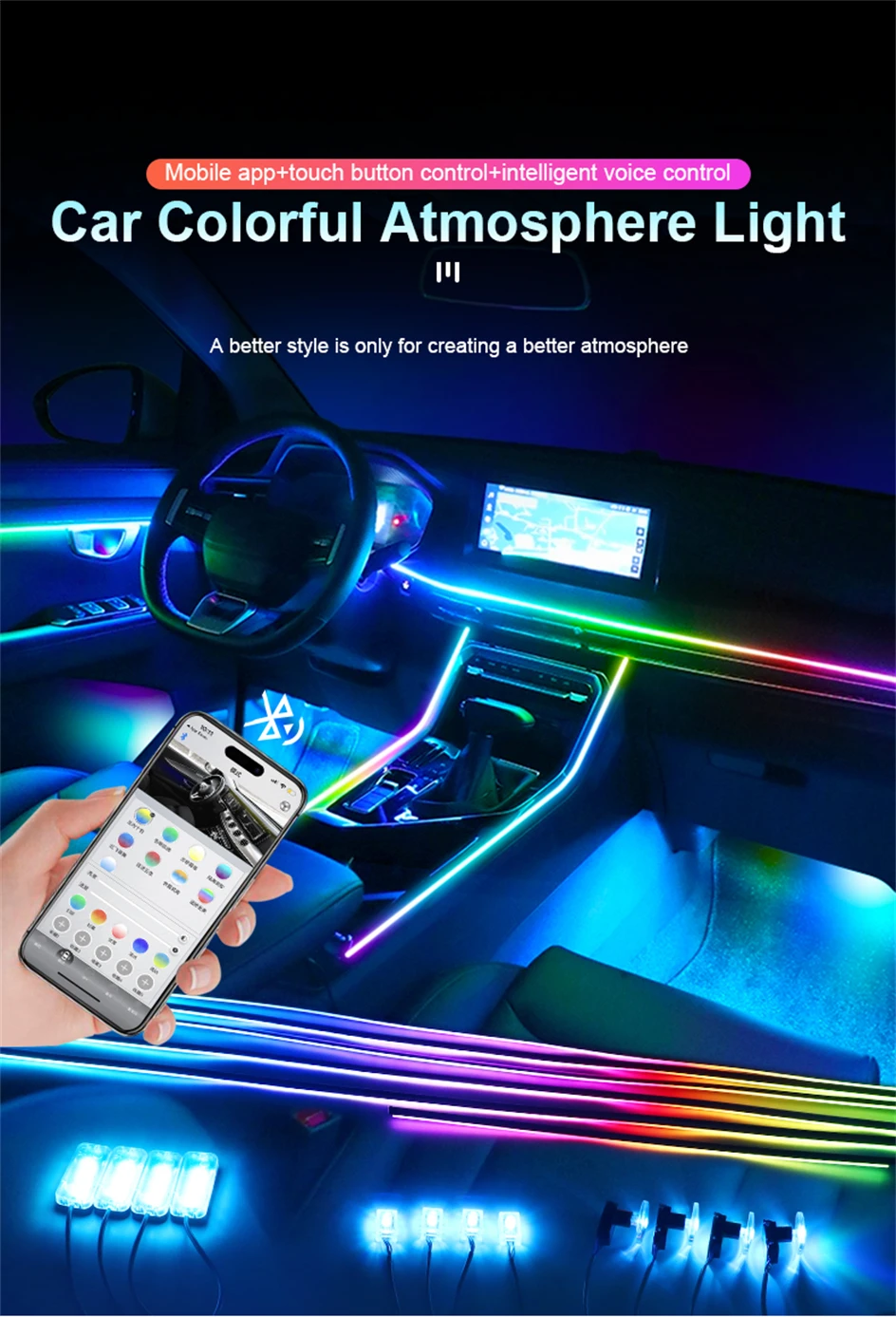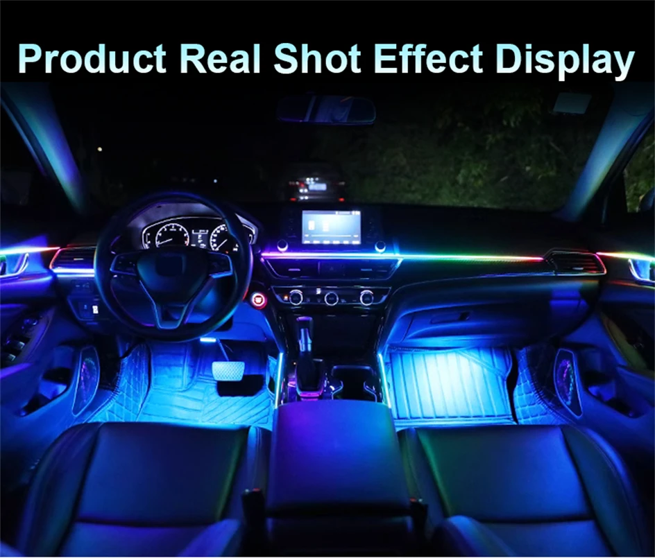 Emitting Color: DEEP BLUE - 18 in 1 Dual Zone Symphony Streamer LED Ambient Lights Car Interior 64 Colors RGB Neon Acrylic Strip Atmosphere Lighting Kit App