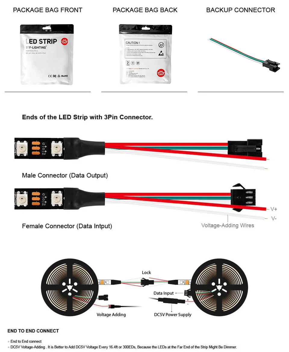 Each strip with one free male connector for connector