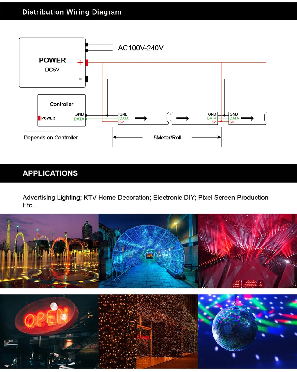 IC Type: Improved version ws2812 IC ( built inside the 5050 smd rgb led, 1 IC drives 1 led chip)Â
