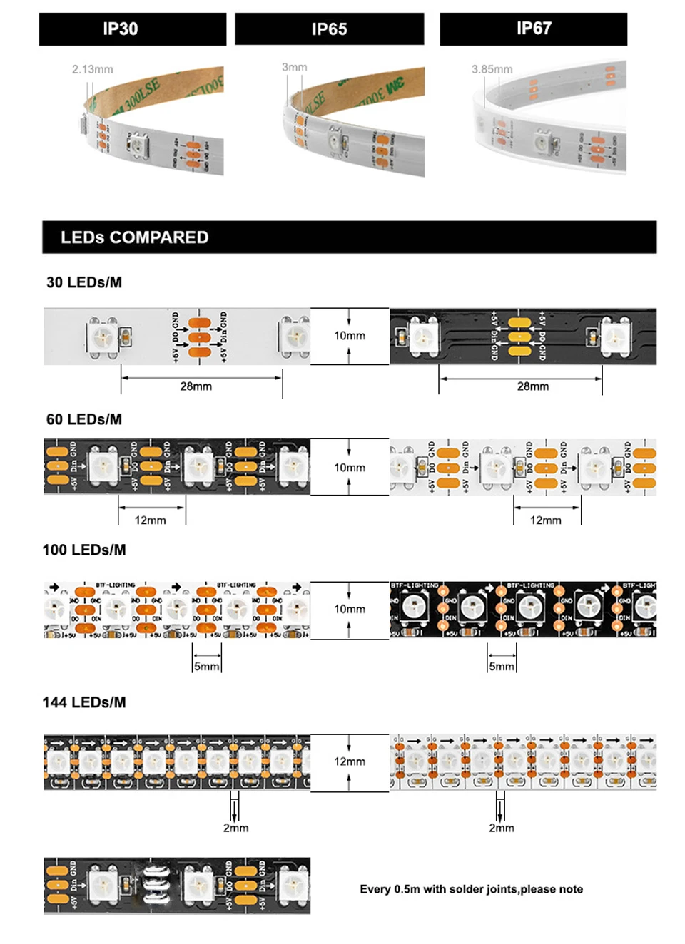 30leds/m, 60leds/m, 100leds/m, 144leds/m