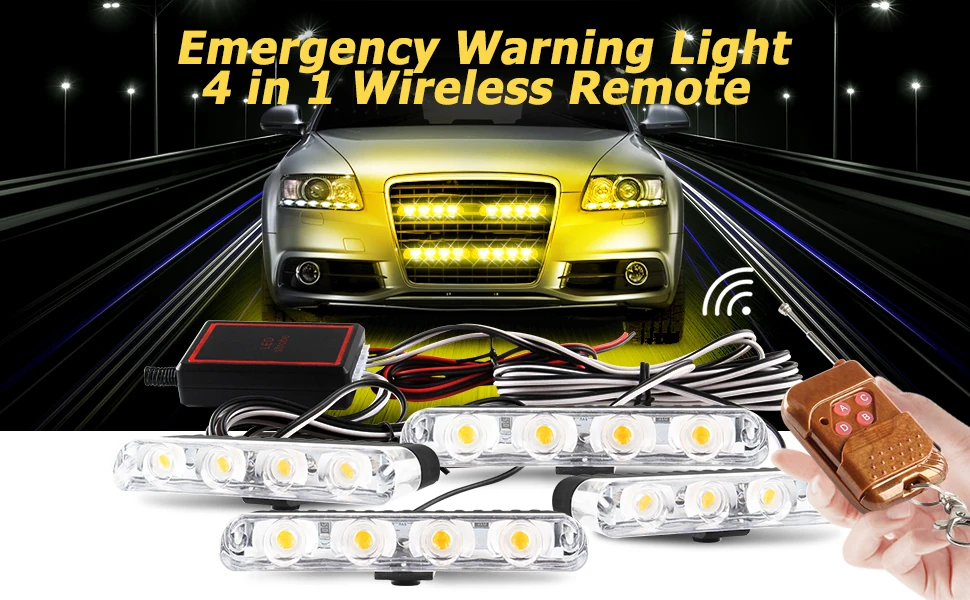 Emitting Color: RGB - 4 In 1 Red Blue Emergency Strobe Lights Police Lights 12V With Wireless Remote Control Flash Grille Light for Cars Truck Van SUV