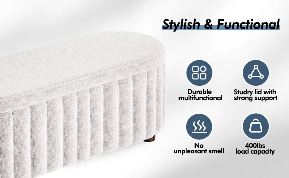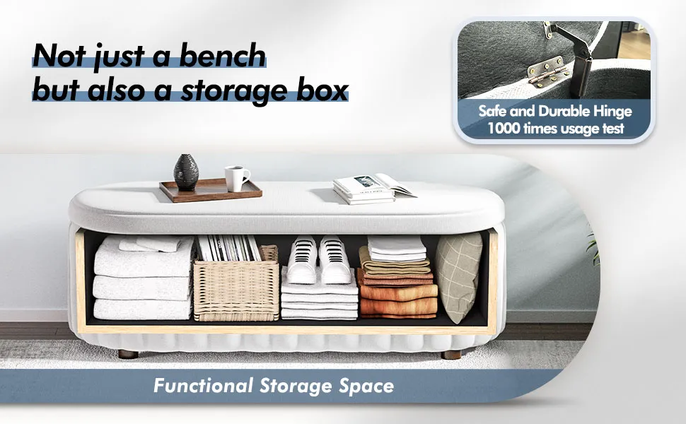- Process: Upholstered with a ribbed design, secure hinge installation, and a spacious storage compartment, plus multifunctional use design.