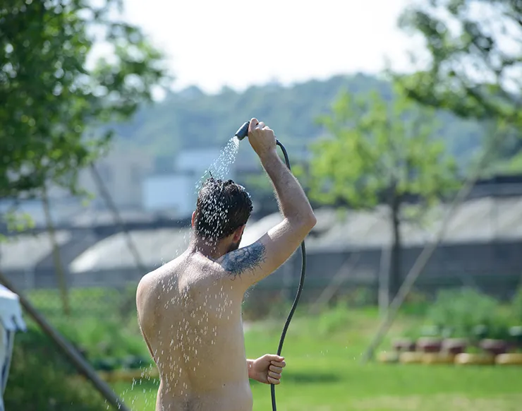 Instalar tu ducha exterior es rápido y sencillo. Simplemente llena la bolsa con agua, cuélgala en un lugar conveniente y usa el cabezal de ducha integrado para disfrutar de una experiencia de agua cómoda y fluida. Perfecta para lavarse después de hacer senderismo o nadar, esta ducha exterior es imprescindible para tus viajes de camping.