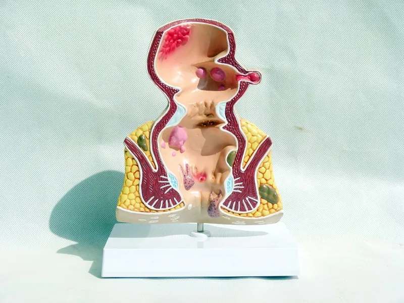Features: This model, about 5 times the size, shows various diseases of the rectum and anus. Common anorectal diseases, such as hemorrhoids,