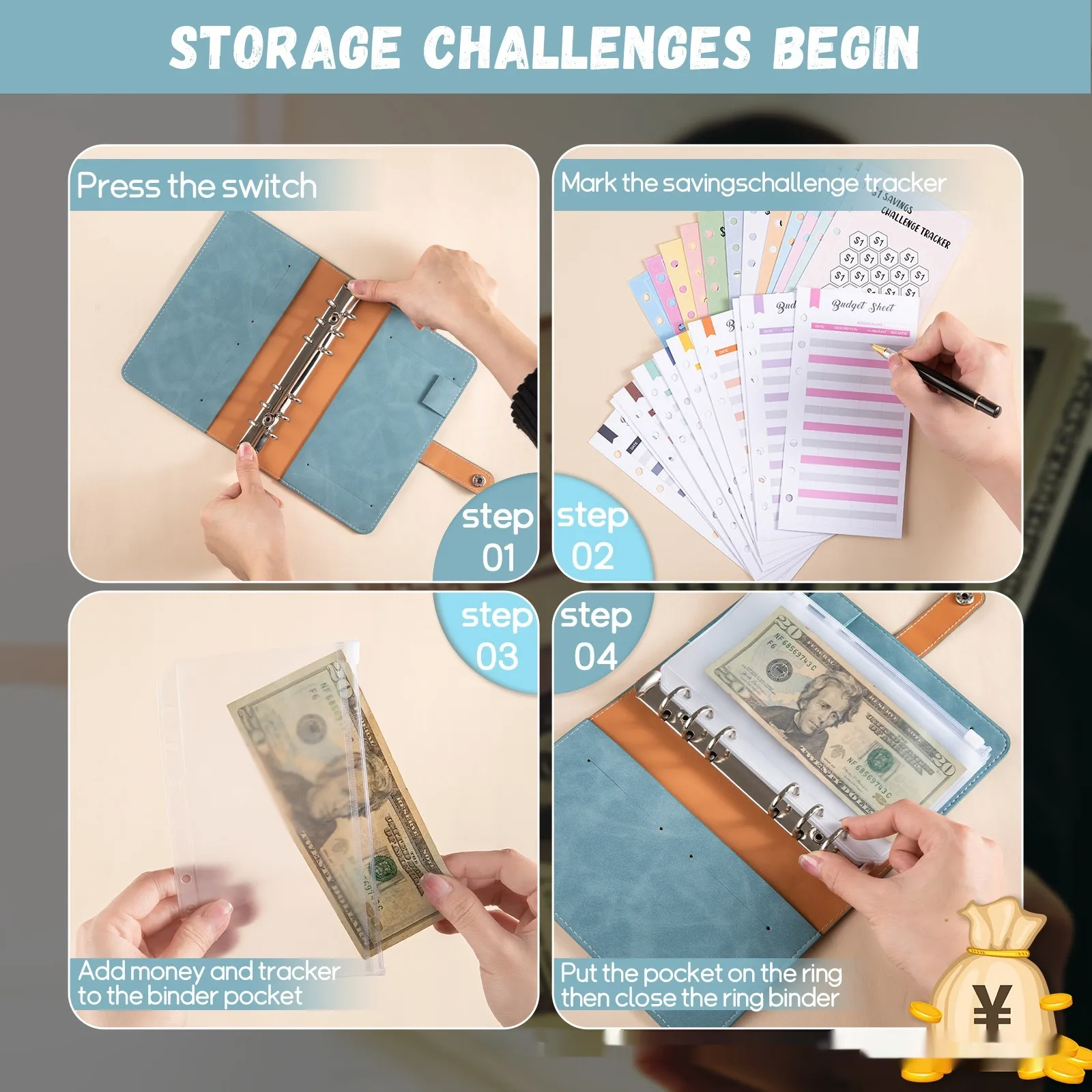 The Envelopes Saving Challenge is a simple but effective way to organize your savings. By using multiple envelopes, each labeled for a specific savings goal (e.g., holiday fund, emergency savings, home renovation, or vacation), you can allocate a set amount of cash to each category. The goal is to "fill" each envelope over time by setting aside a certain amount each week or month, which helps you stay accountable to your financial goals.