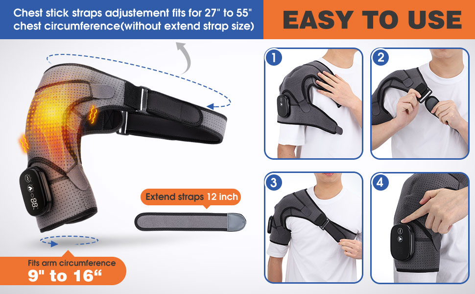 El soporte de hombro eléctrico ajustable está diseñado ergonómicamente para una mayor comodidad. La hombrera está fabricada con neopreno de alta calidad y una correa de cierre resistente para garantizar su comodidad, transpirabilidad y resistencia al aflojamiento durante el uso. />
