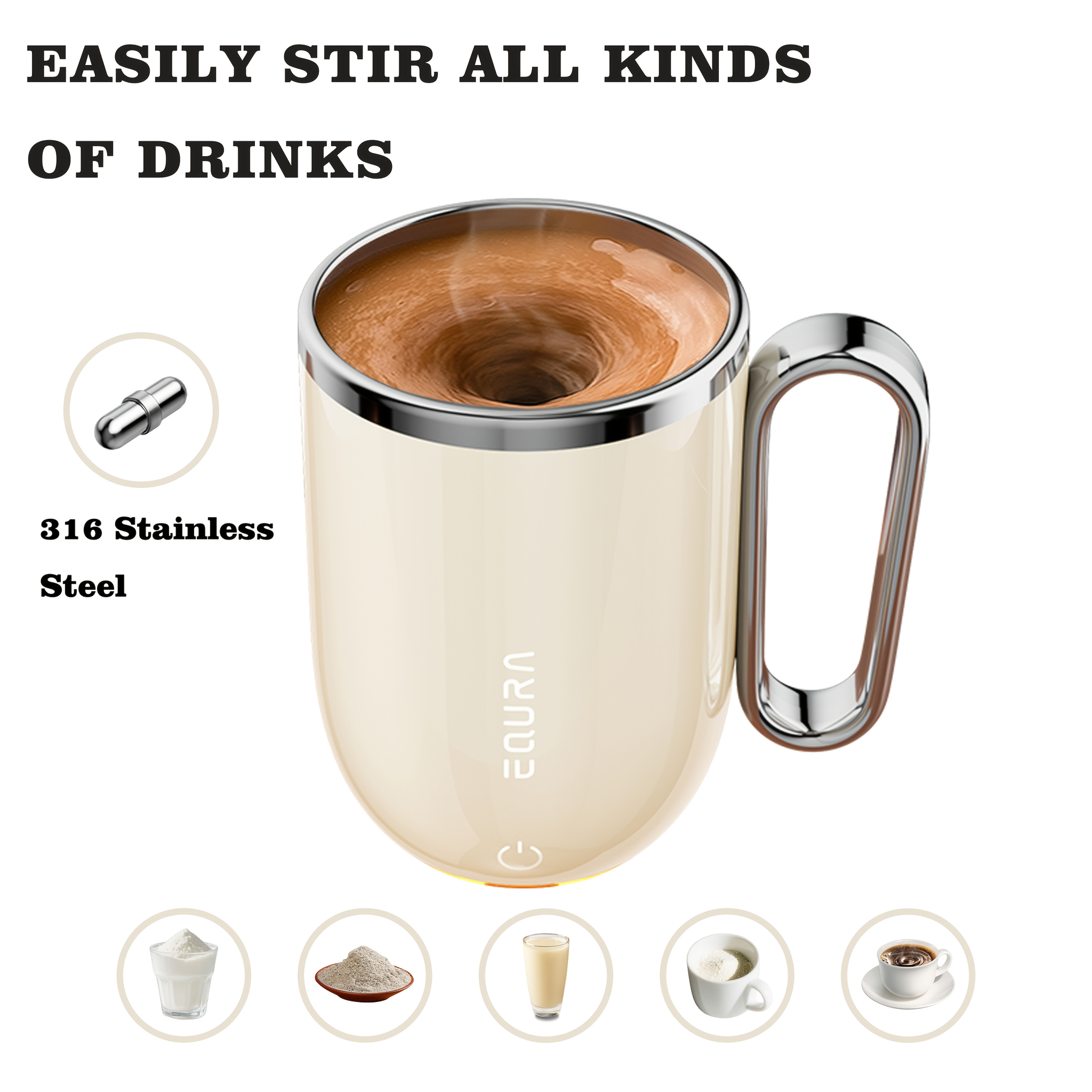 eQUra 420ml Rechargeable Magnetic Self-Stirring Travel Mug – Automatic Mixing Cup for Coffee, Milk, Chocolate & On-The-Go Drinks