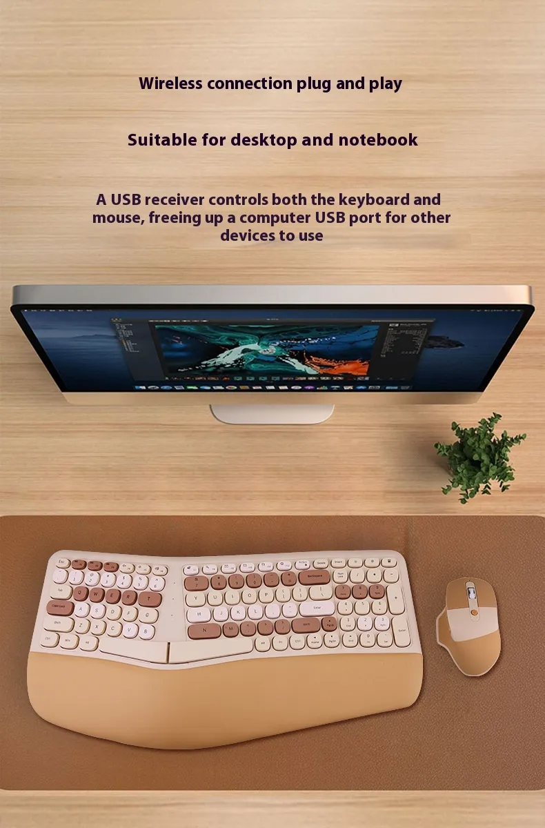 Ergonomic Veneer Wrist Splint Wireless Keyboard And Mouse Set
