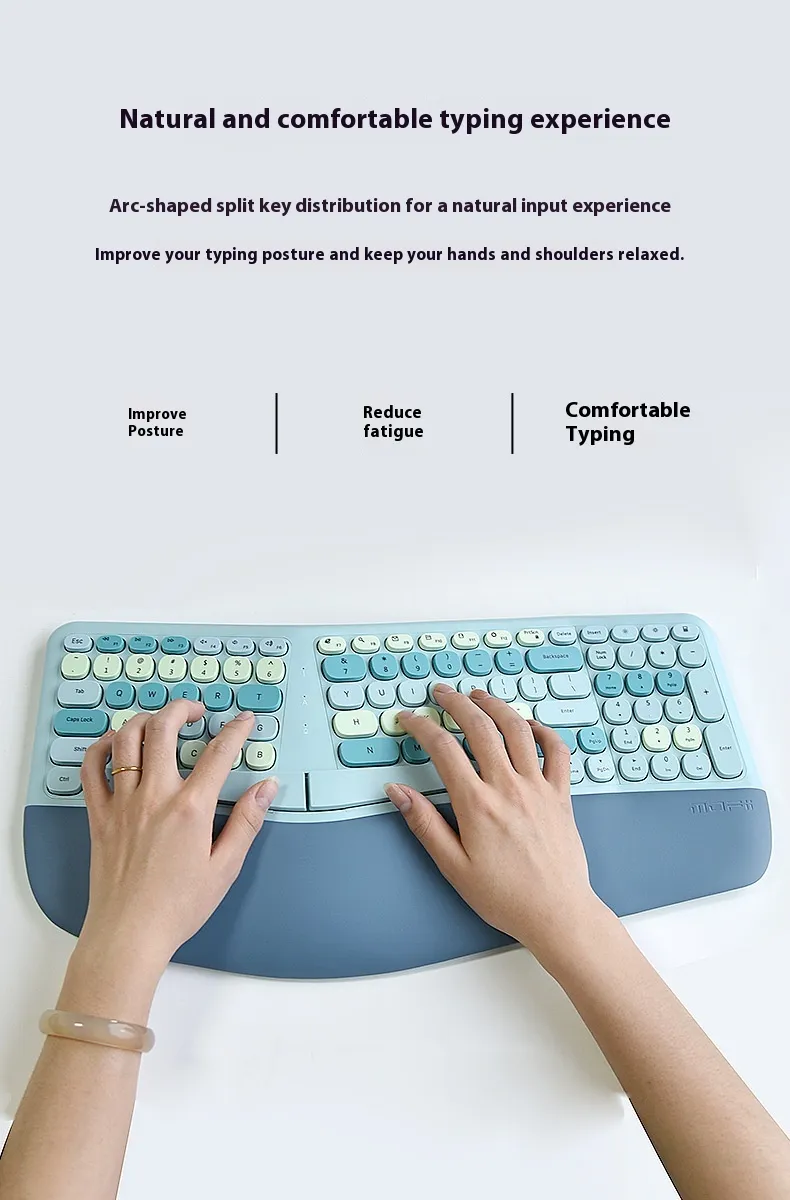 Ergonomic Veneer Wrist Splint Wireless Keyboard and Mouse Set – Comfort, Support, and Precision for Efficient Typing