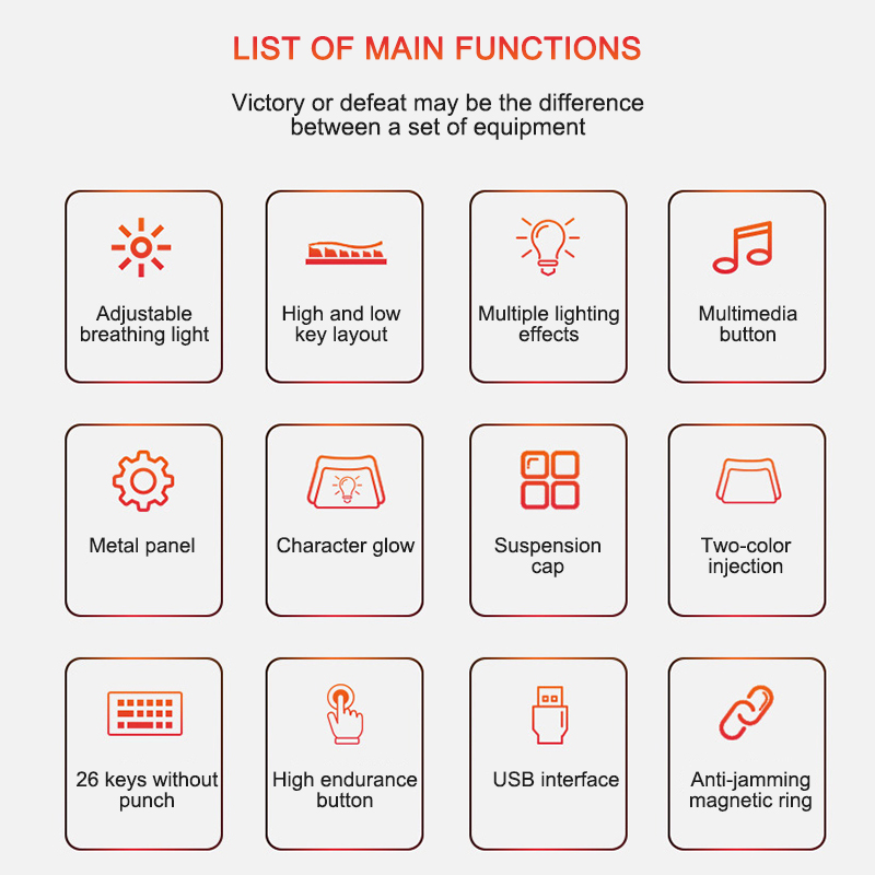 One of the standout features of this keyboard is the RGB backlighting. Featuring a wide range of colors and customizable lighting effects, you can easily personalize the look of your keyboard to match your gaming environment or mood. Choose from a spectrum of colors or select from various lighting modes, such as breathing effects, wave patterns, or static color schemes. The RGB backlight not only looks stunning but also enhances visibility during low-light gaming situations, giving you a tactical advantage when playing in darker environments.