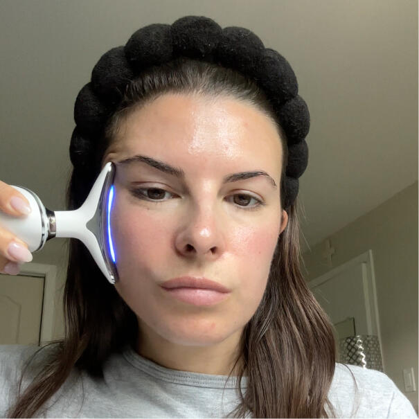 Desliza suavemente el Escultor Facial LUMINESCE por tu piel, dejando que la luz y el masaje hagan su magia. ¡Felicidades! Estás a punto de unirte a nuestros más de 120,000 Clientes Satisfechos.