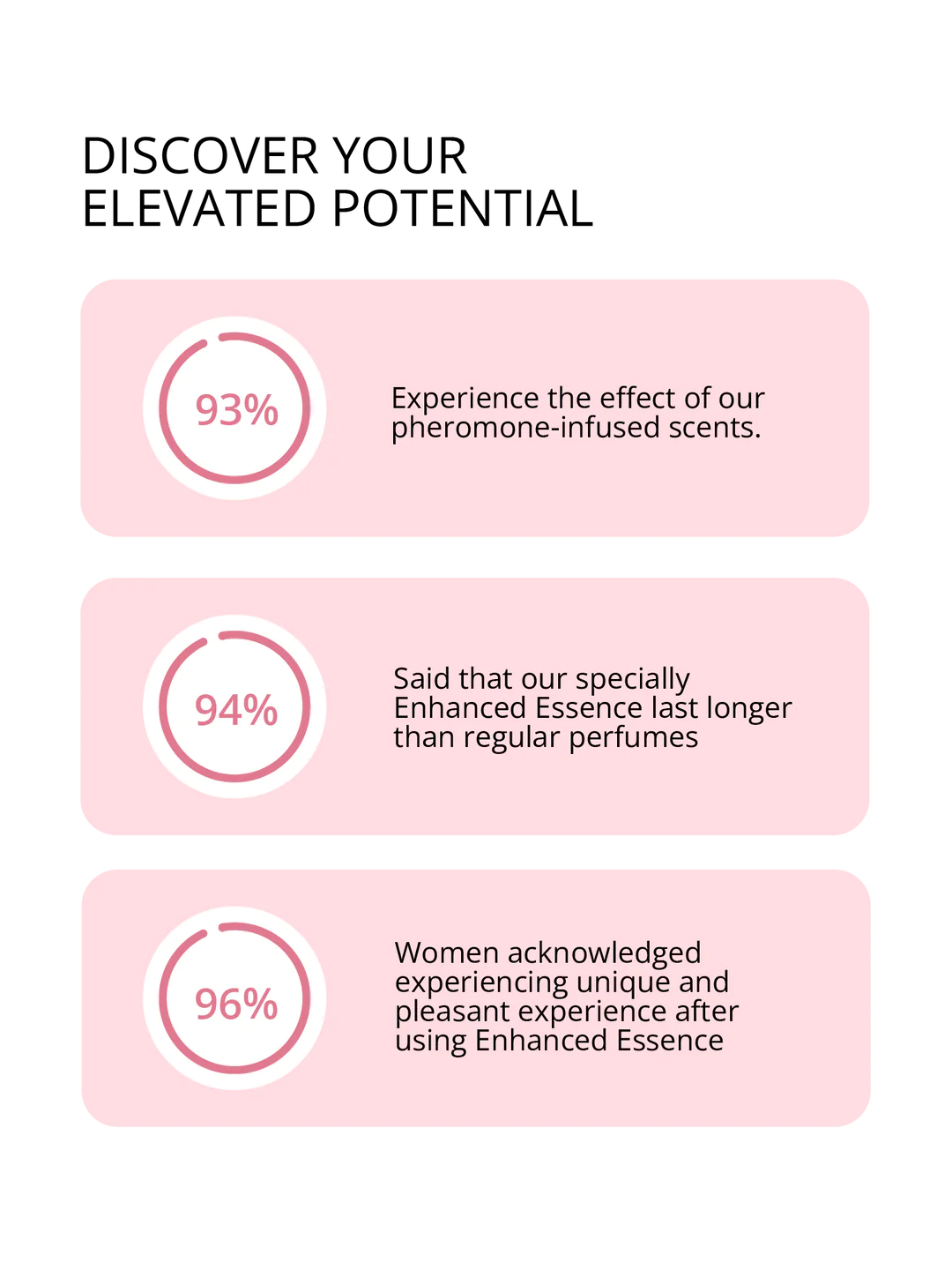 El aroma original de Enhanced Essence presenta una fragancia encantadora enriquecida con poderosos componentes naturales que aumentan la atracción de forma natural.