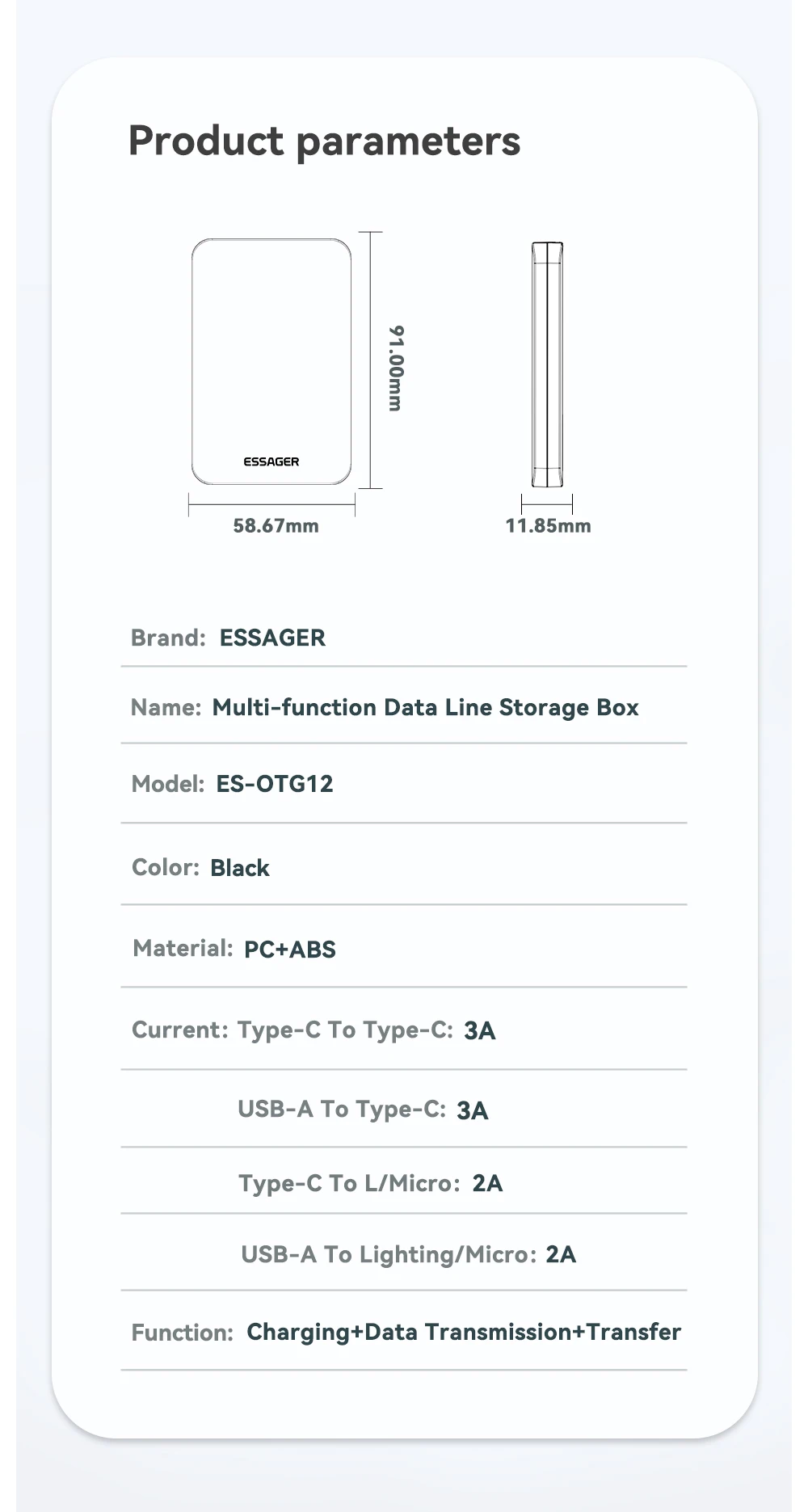 Keep your cable organised with the compact storage box, perfect for slipping into your bag or pocket. Its portability makes it an essential accessory for travel or on-the-go use.