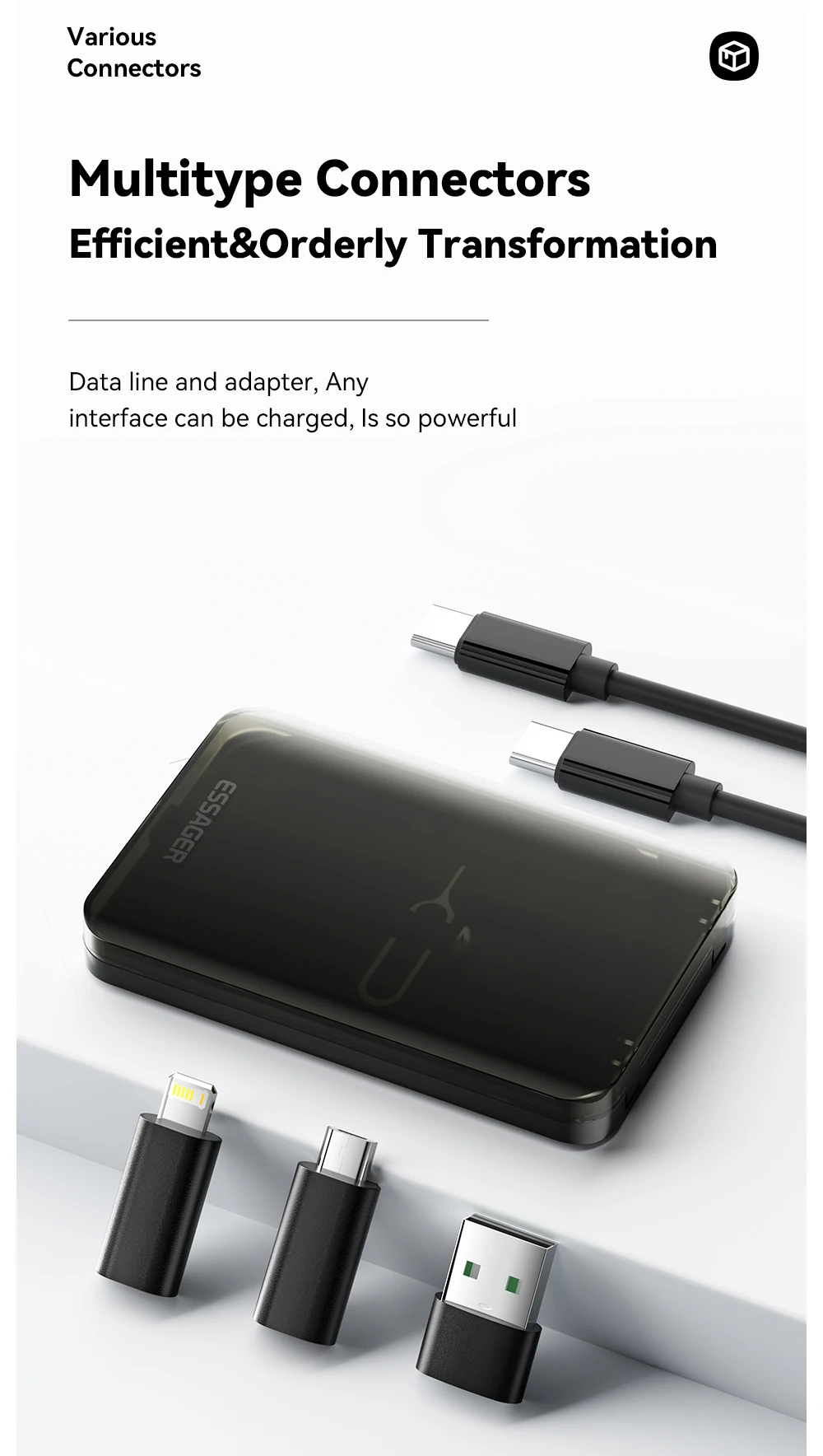 Built with premium materials, the Essager 4-in-1 Cable is designed for durability. The reinforced connectors and sturdy construction ensure it withstands everyday use and repeated bending.