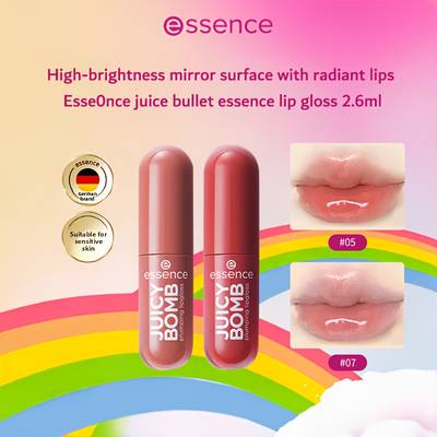 The essence JUICY BOMB Plumping Lipgloss (Shades #05 and #07) is a fun, glossy, and volumizing lip product perfect as a Christmas gift or a sweet everyday beauty essential. With its smooth liquid texture, this lip gloss delivers a juicy shine while giving the lips a fuller, plumper appearance.