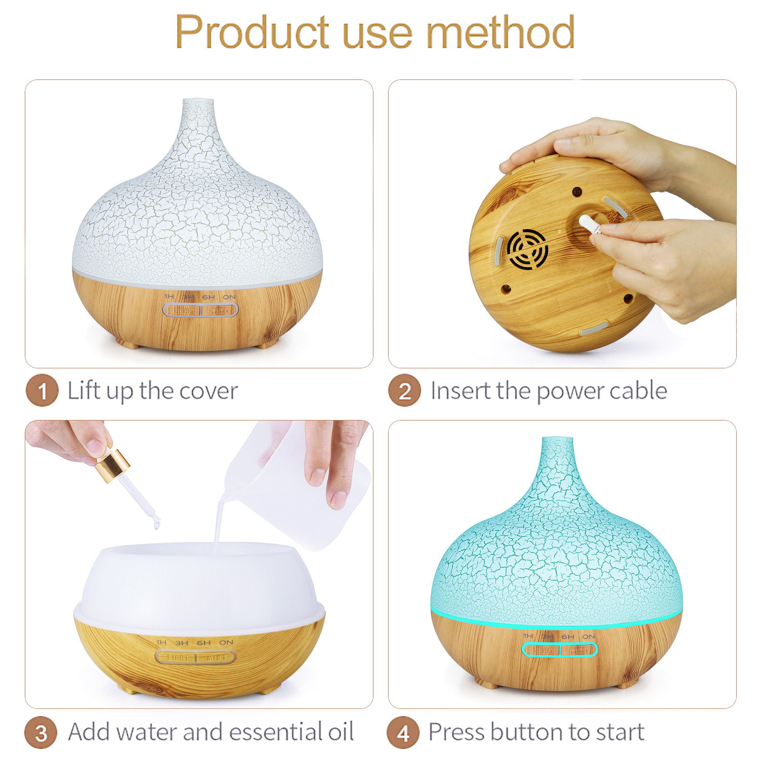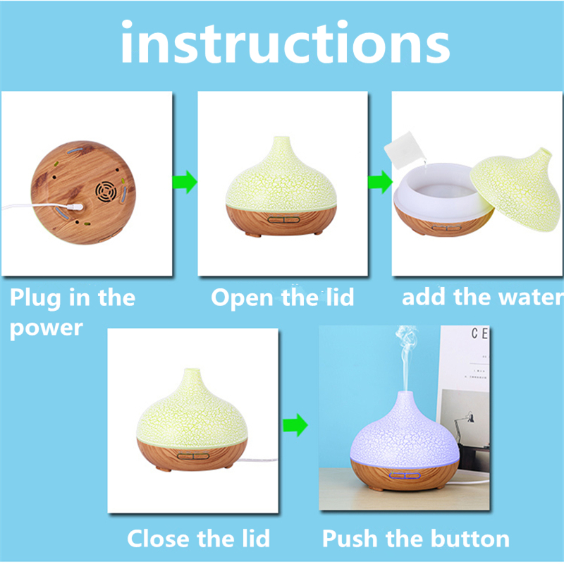 Decoration: warms the atmosphere in the room by adding perfume or essential oil to the atomizer tank