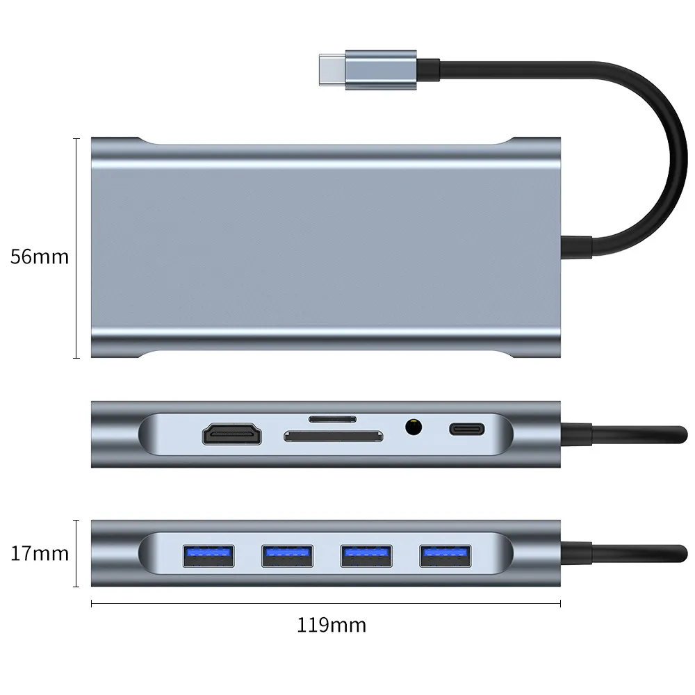 Estación de acoplamiento 11 en 1 para el fabricante Type-C Docking Station 3.0 Hub