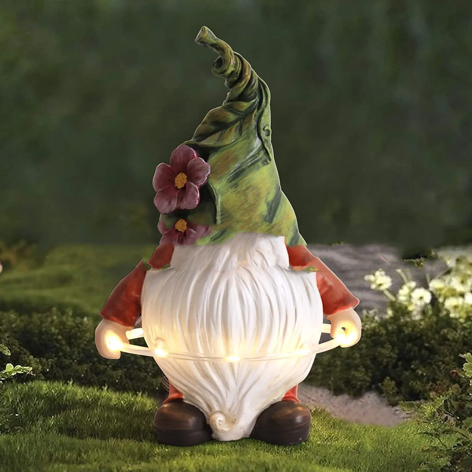 Estatua de enano de jardín - Estatua de enano de resina con luces LED solares, artesanía de resina, decoración para exteriores, luces de jardín, esculturas y adornos