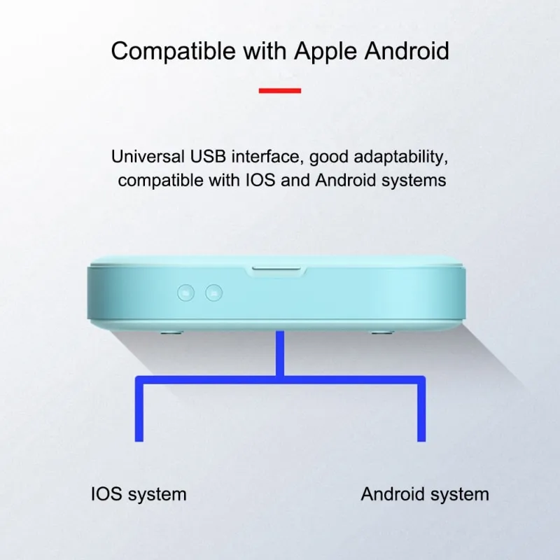 Una de las características destacadas de la Caja Esterilizadora de Teléfonos con Doble UV de 5 V es su sistema de doble luz UV. A diferencia de los desinfectantes UV individuales, esta caja utiliza dos lámparas UV-C para una cobertura más completa y una esterilización más rápida. La luz UV-C es conocida por su eficacia para destruir bacterias y virus al descomponer su ADN, volviéndolos inofensivos. Con el doble de cobertura UV, el proceso de esterilización es más rápido y completo, garantizando la desinfección completa de sus artículos. Amplia compatibilidad con diversos dispositivos
