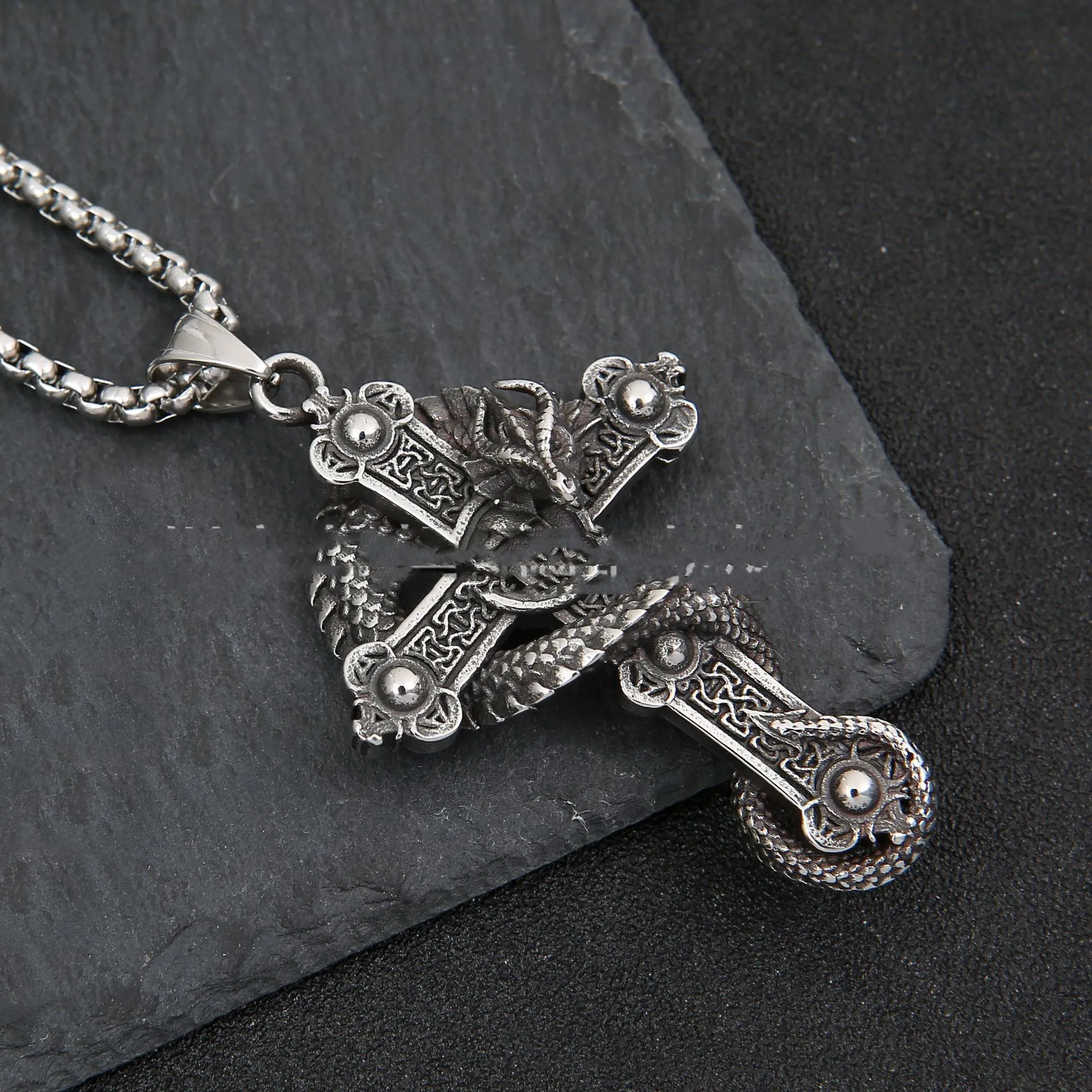 European And American Stainless Steel Necklace Cross Dragon Pendant