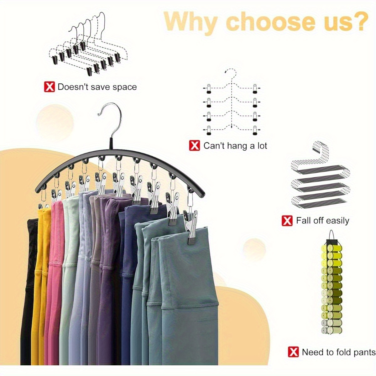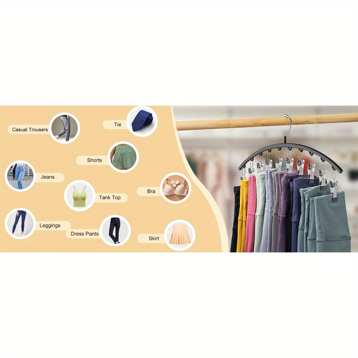 Maximize closet space and keep your wardrobe organized with the EVER BLOOMING Pants Hanger featuring 10 clips. Perfect for hats, shirts, leggings, jeans, and more, this hanger is an essential storage solution for any home or dorm.