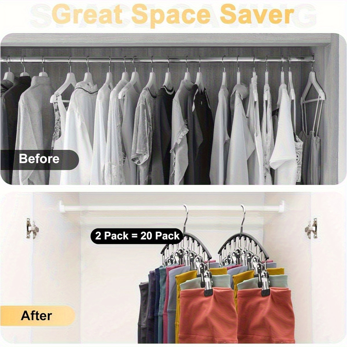 - Space-Saving Design: The 10-clip hanger allows you to organize multiple items on a single hanger, maximizing closet space and reducing clutter.