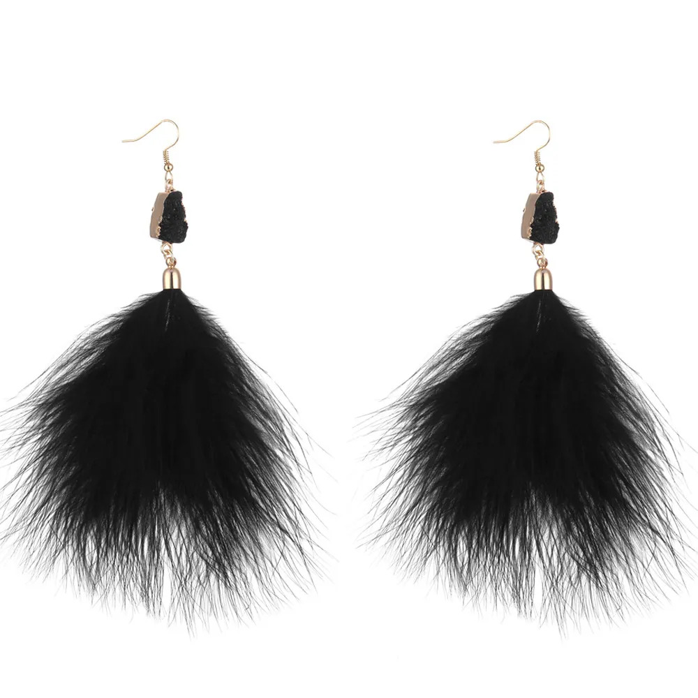 Exaggerated Feather Plush Earrings – Luxury and Bold Elegance