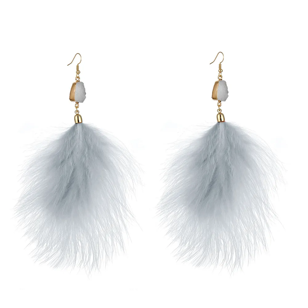 Exaggerated Feather Plush Earrings Luxury Temperament Ladies Earrings