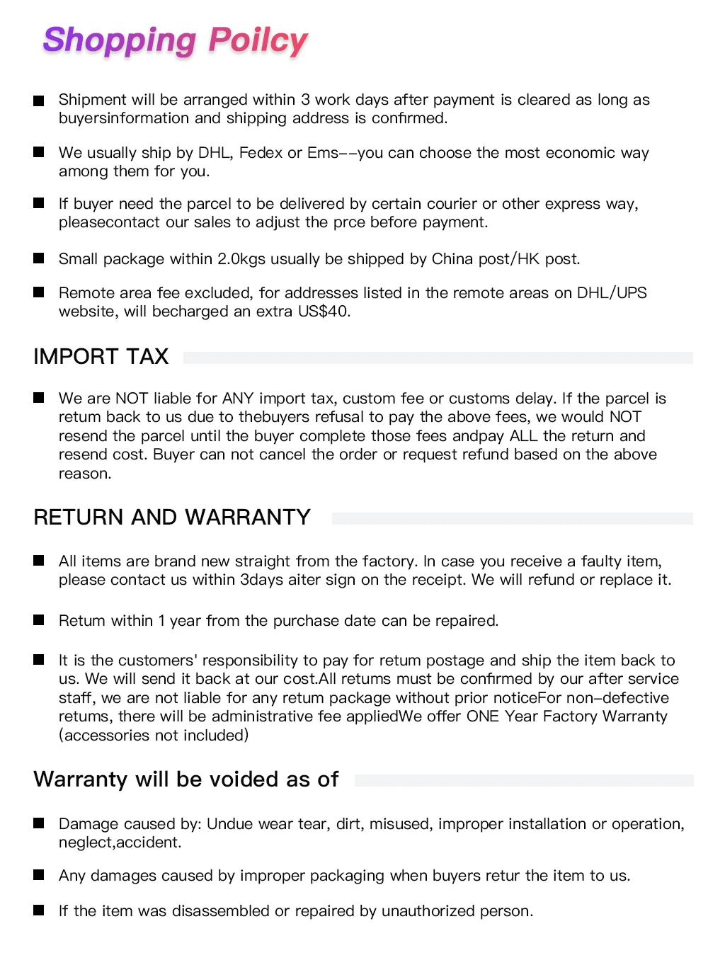 >>> All products have been passed strict quality test before shipment, make sure high quality.