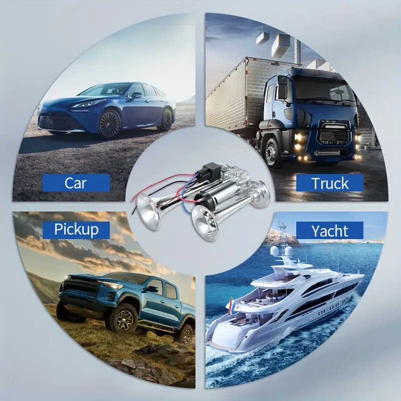Extremely Loud Dual Horn Air Horn System Designed for 12V Vehicles