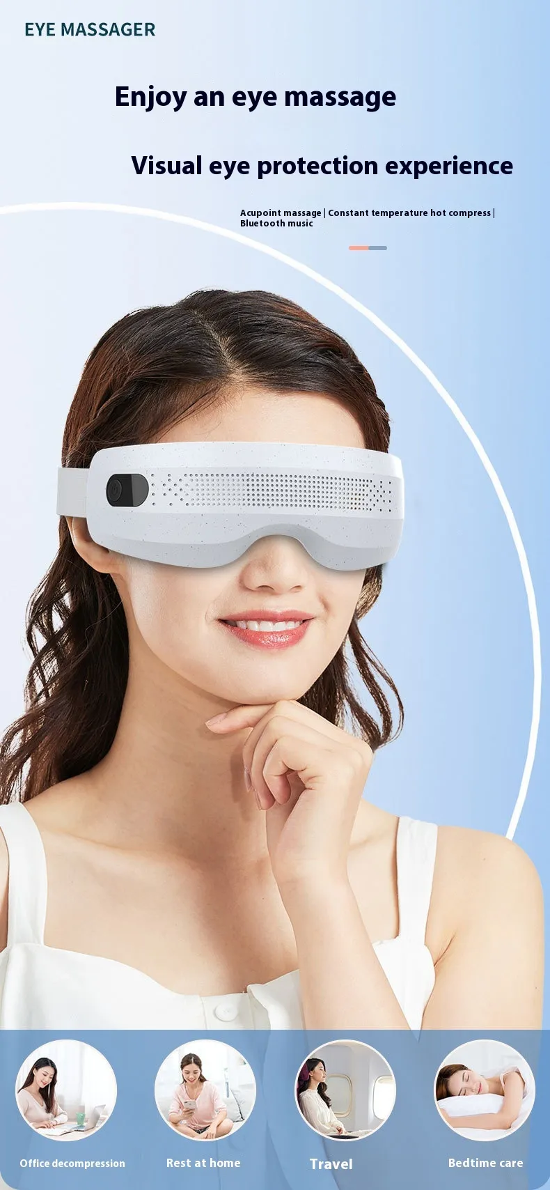 Vibration Massage for Deep Relaxation: The built-in vibration function provides a deeper level of relaxation, gently massaging your temples, forehead, and eyes to release tension and promote blood circulation.