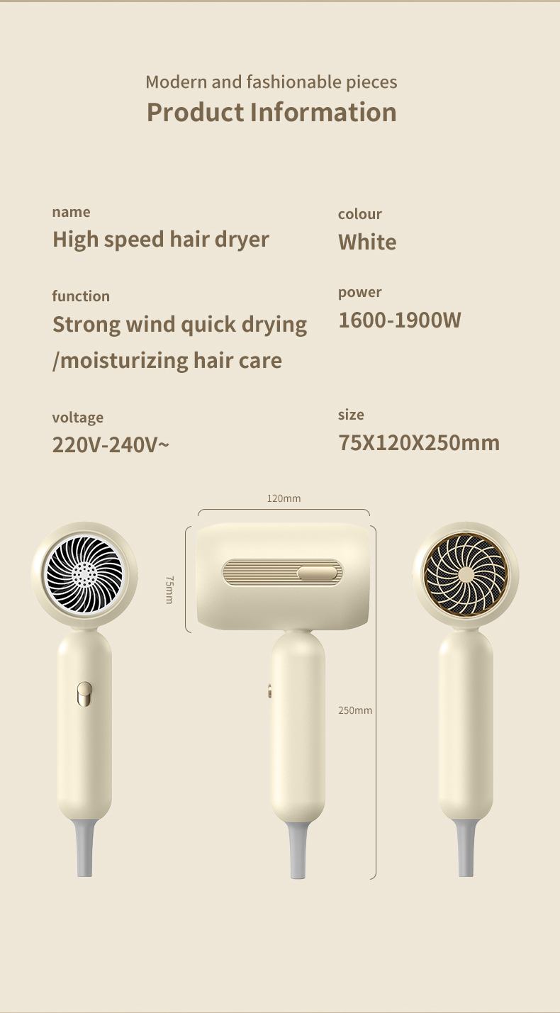High power: The maximum power of this hair dryer is 1900W, providing powerful performance for all your hairstyle needs.