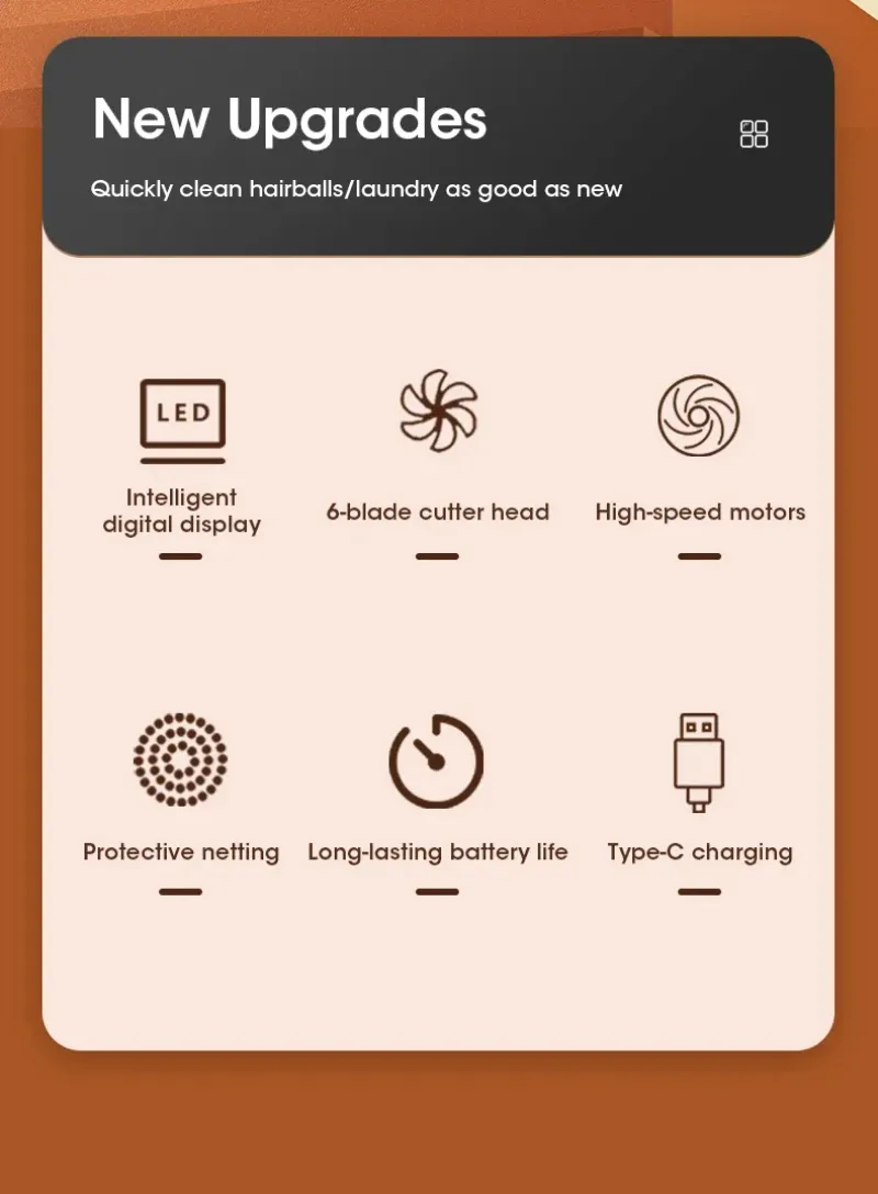 1. Stainless steel six-leaf cutter head, strong power, quickly and efficiently removes hairballs on clothes without hurting clothes, making your clothes smooth and tidy.