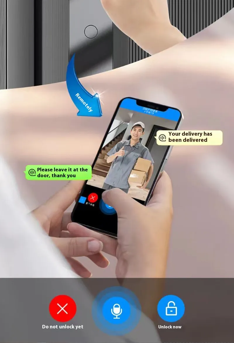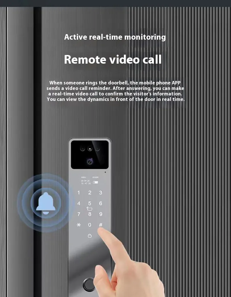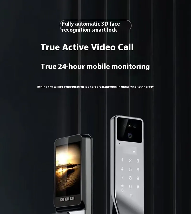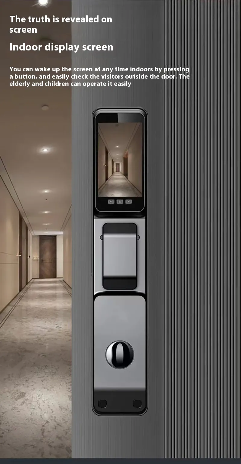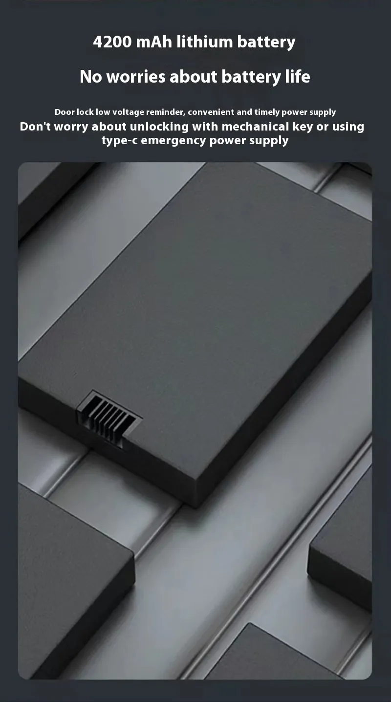 This smart lock supports face recognition, fingerprint unlock, password, IC card, and mechanical key backup. Its 360° fingerprint sensor ensures quick and accurate access in just seconds, while the AI face recognition system provides enhanced security against unauthorized entry.