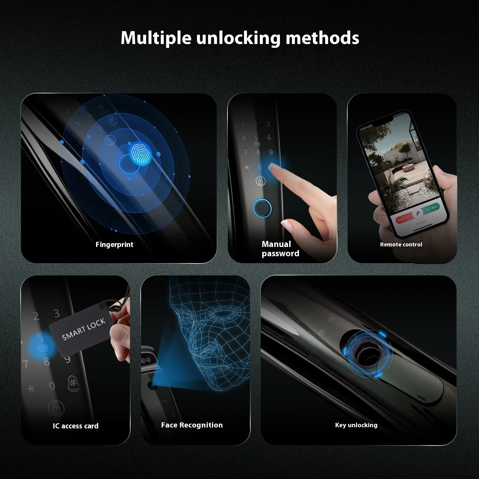 Control method: IC card, key, fingerprint, password, facial recognition, APP unlocking