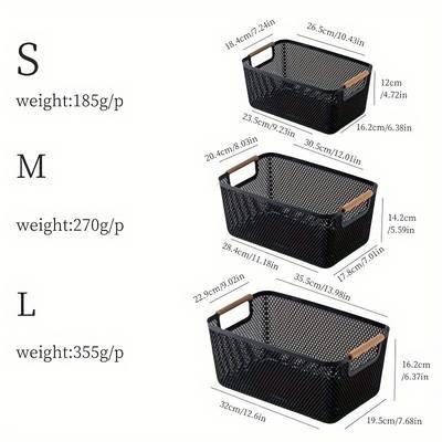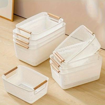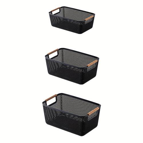 The FARIDABIO 3pcs Plastic Storage Baskets are the perfect blend of functionality, style, and durability. Their perforated design promotes airflow, preventing stale odors and keeping your items fresh. The sturdy construction and double wooden handles ensure easy carrying and long-term use, while the sleek colors allow them to blend seamlessly into any décor. Whether for home, office, or workspace use, these baskets provide an efficient storage solution that is as attractive as it is practical.