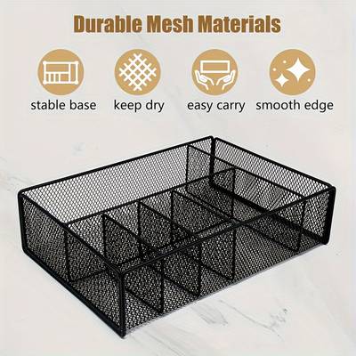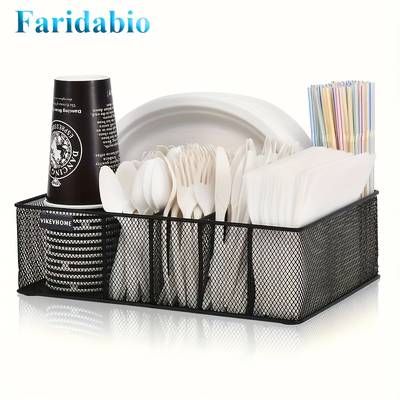 The FARIDABIO Iron Metal Mesh Utensil Holder is a versatile and durable storage solution designed to help you organize your kitchen, office, or camping gear. With its 6-compartment design, it’s perfect for holding straws, spoons, knives, napkins, and plates, keeping everything neatly separated and within easy reach. Whether you're at home, in a coffee shop, or even camping, this organizer helps keep your space tidy and efficient. Its durable iron construction and sleek black finish make it an ideal choice for those who value both function and style.