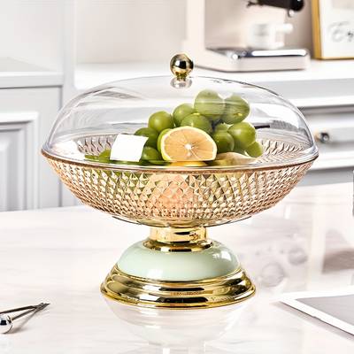 This round storage basket is crafted from PET plastic, ensuring sturdiness and long-lasting use. The lid helps keep contents clean and protected from dust, while the ample size is perfect for storing fruits, bread, snacks, toys, office supplies, or even small decorative items.